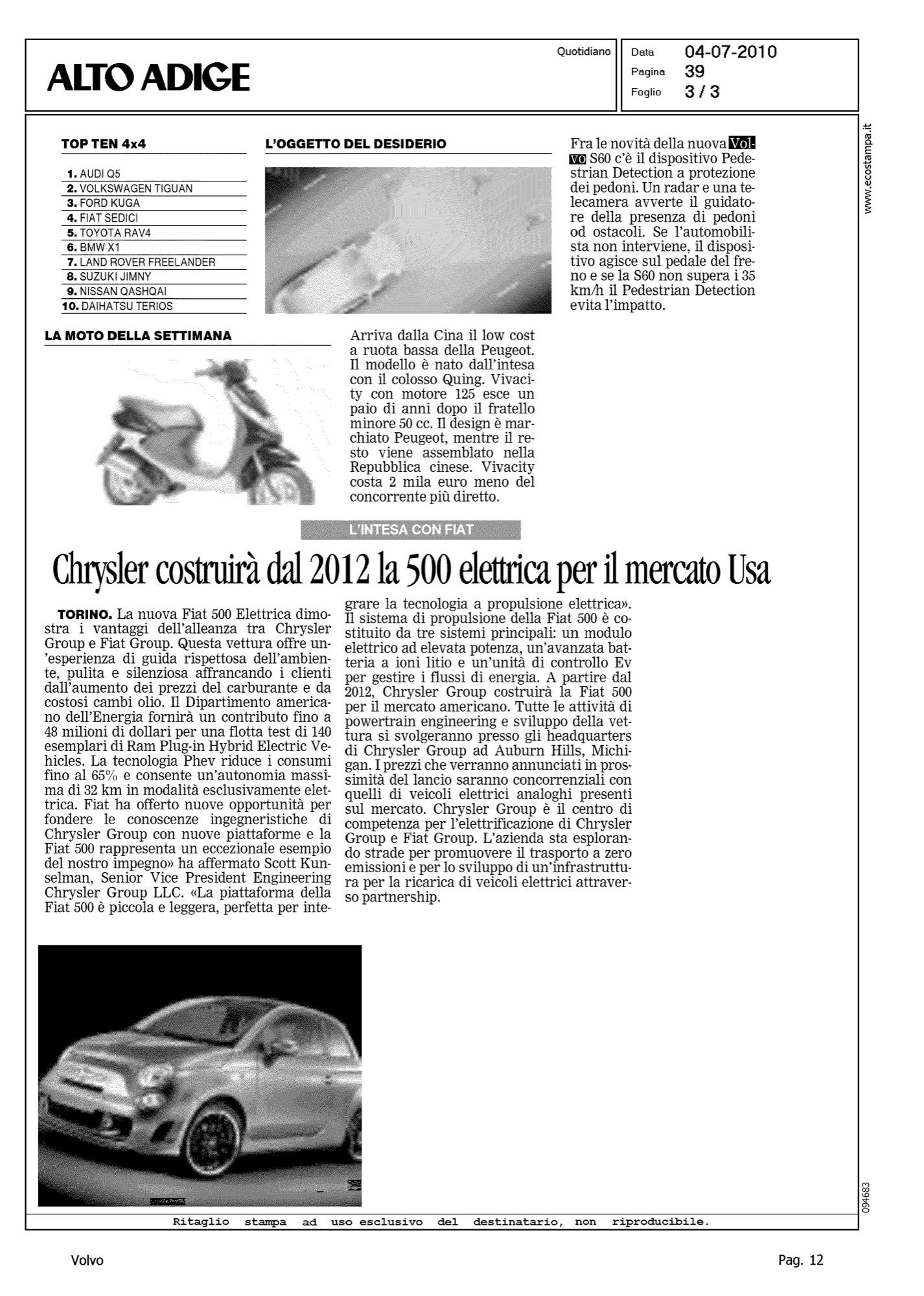 Author: TONIDANDEL, BRUNOLine: S60 Model: Linea S60 Testdrive Subject: - Title: L'OGGETTO DEL DESIDERIOHighlight: SICUREZZA - PEDESTRIAN DETECTION