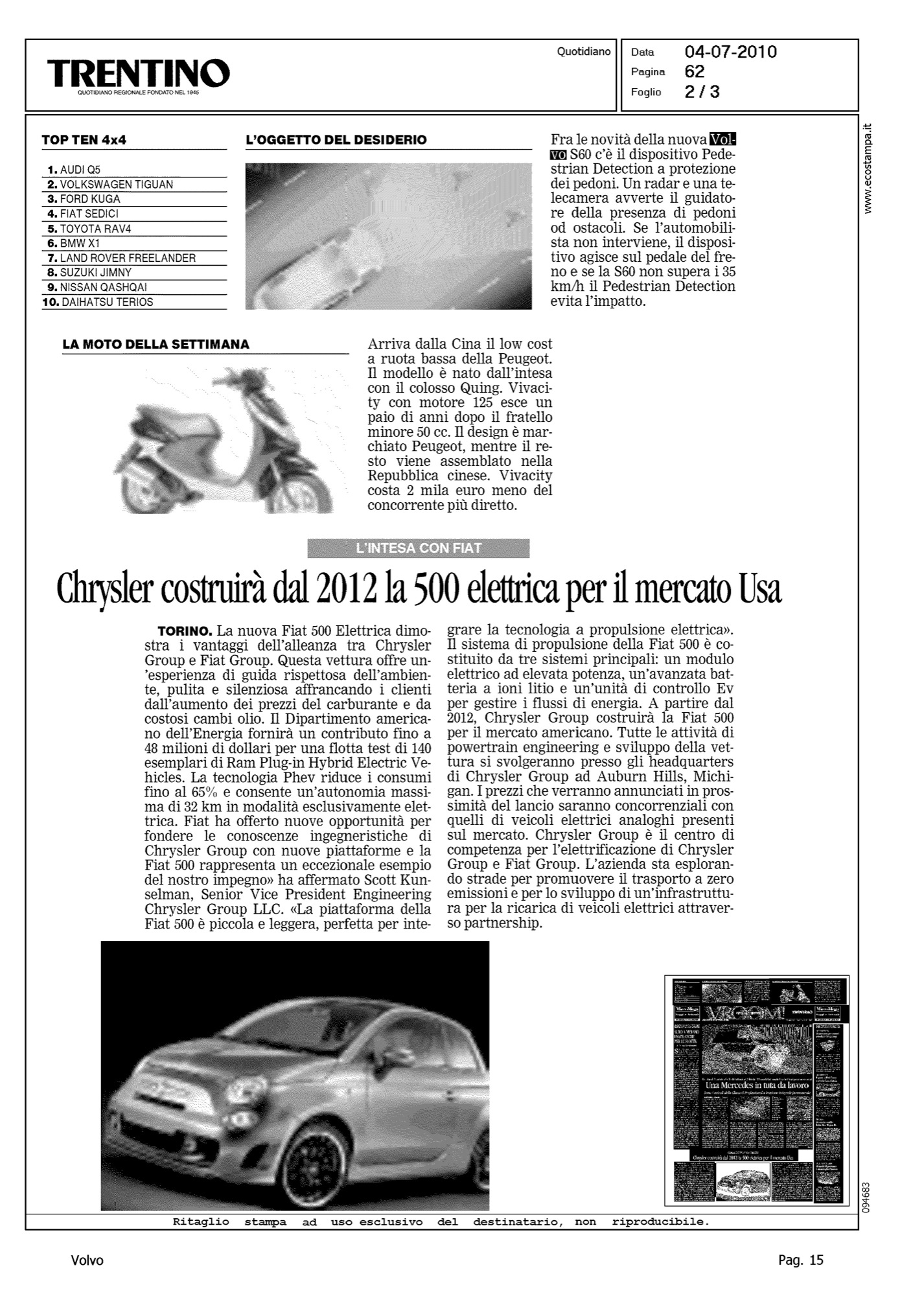 Author: TONIDANDEL, BRUNOLine: S60 Model: Linea S60 Testdrive Subject: - Title: L'OGGETTO DEL DESIDERIOHighlight: SICUREZZA - PEDESTRIAN DETECTION