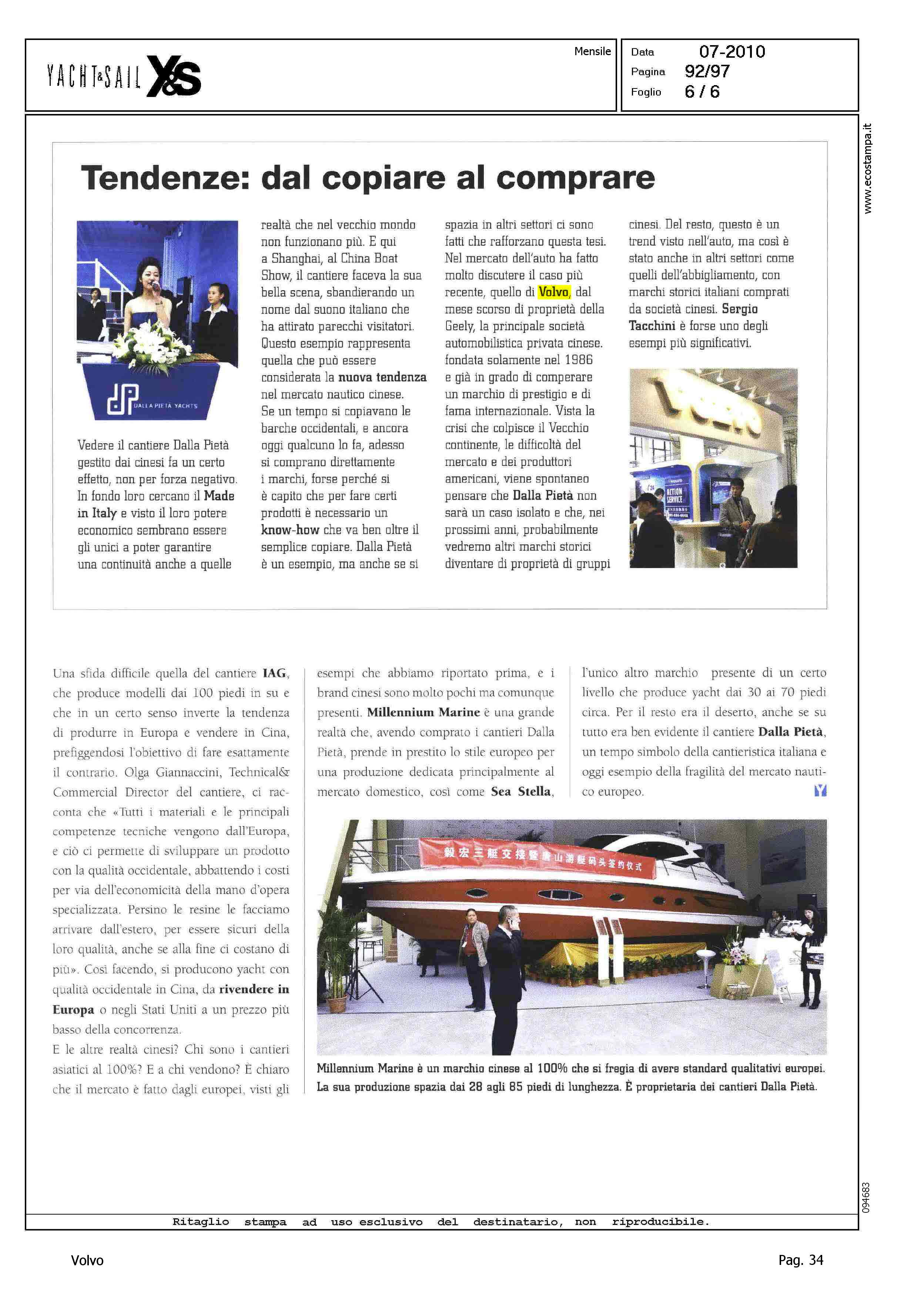Author: GABBA, TOMMASOLine: Corporate Model: Corporate Subject: - Title: TENDENZE: DAL COPIARE AL COMPRAREHighlight: CITAZIONE, GEELY, VENDITA VOLVO - REPORTAGE NAUTICA IN CINA, MERCATO DEL LUSSO