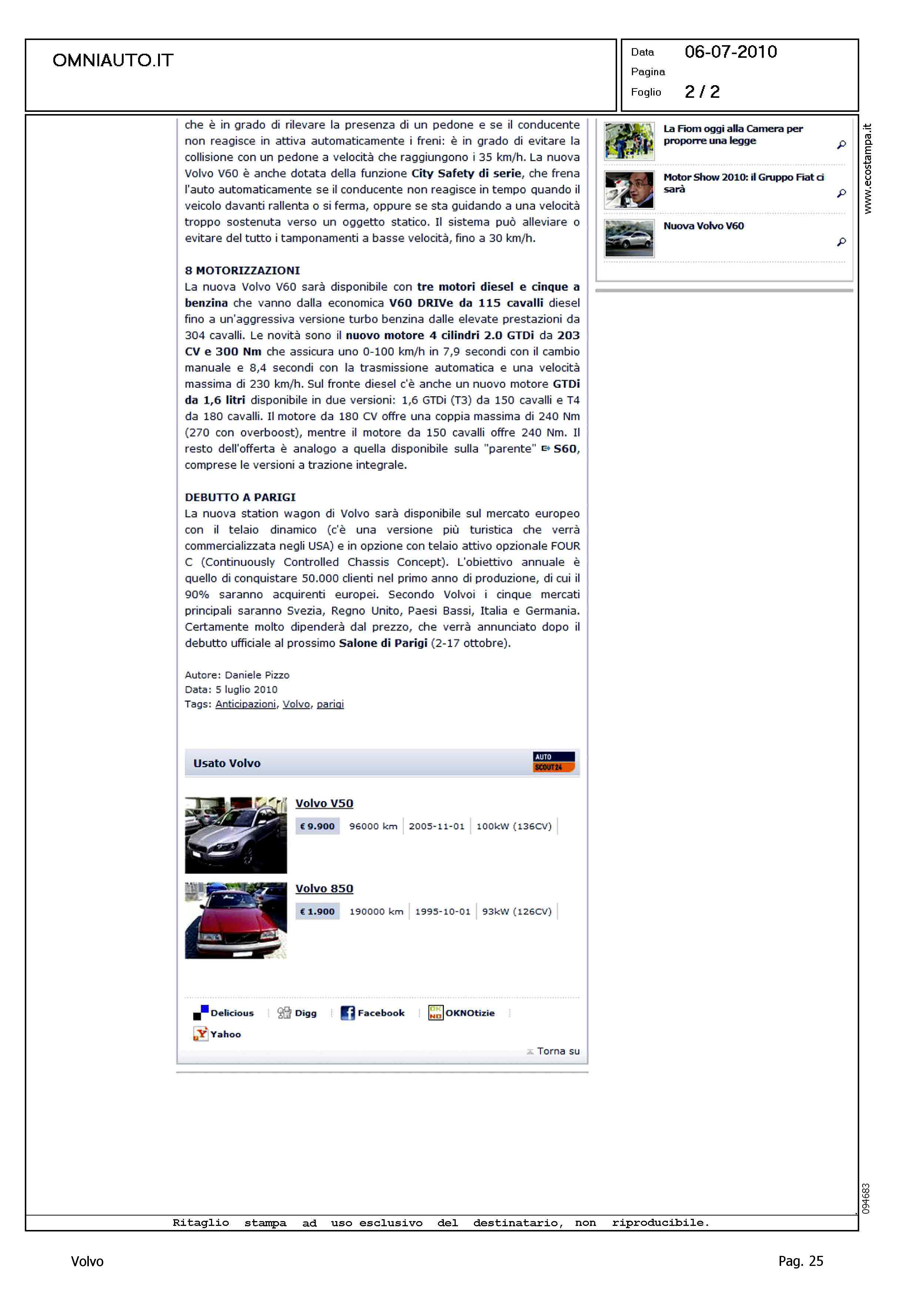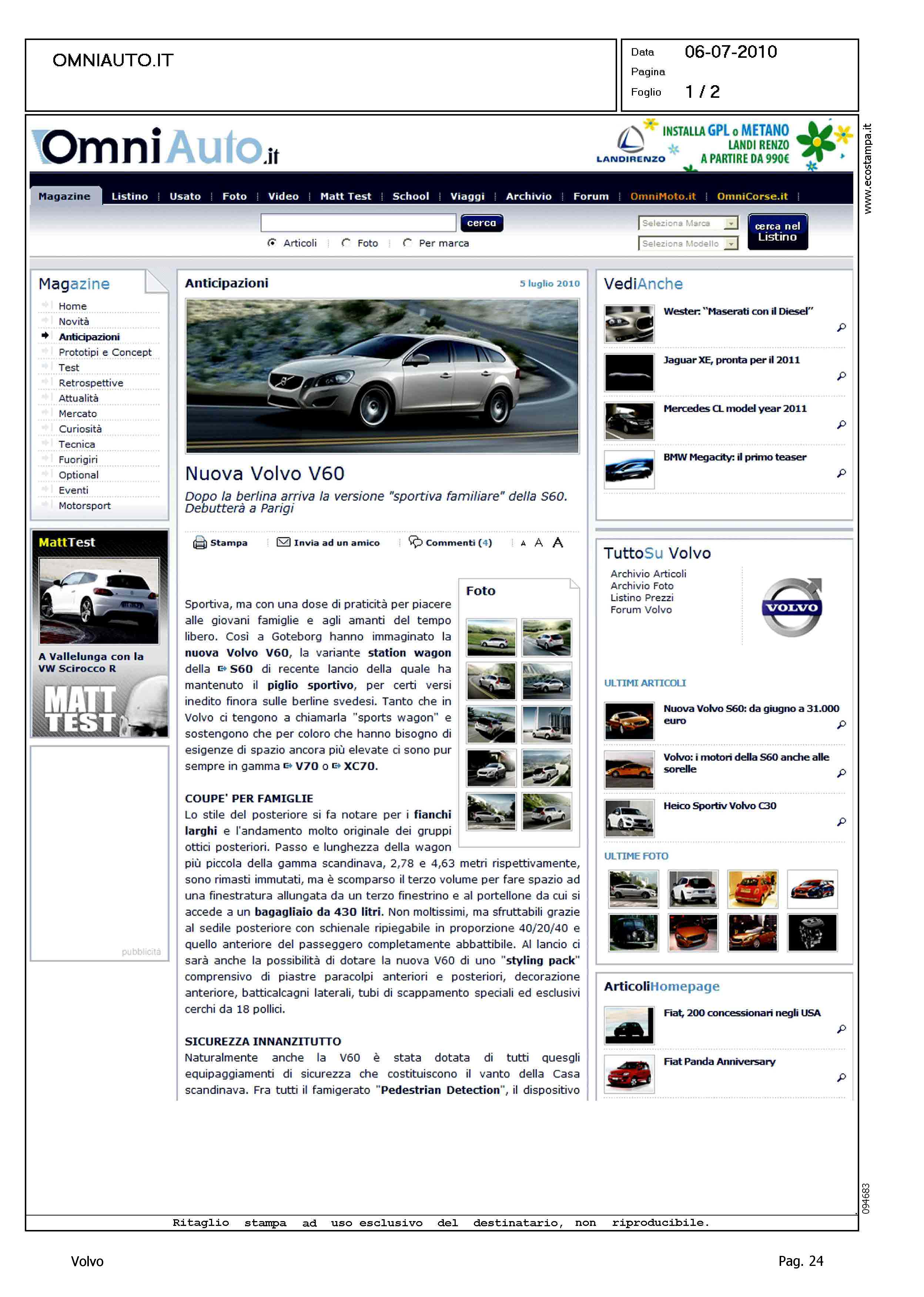 Highlight: DEFINIZIONE DEL TARGET - SPORTIVITA' - DINAMISMO - NUOVO POSIZIONAMENTO WAGON VOLVO - DESIGN - BAGAGLIAIO - VOLUME - FLESSIBILITA' CONFIGURAZIONE - STYLING PACK - SICUREZZA - PEDESTRIAN DETECTION - CITY SAFETY - MOTORI, GAMMA - PRESENTAZIONE A PARIGI