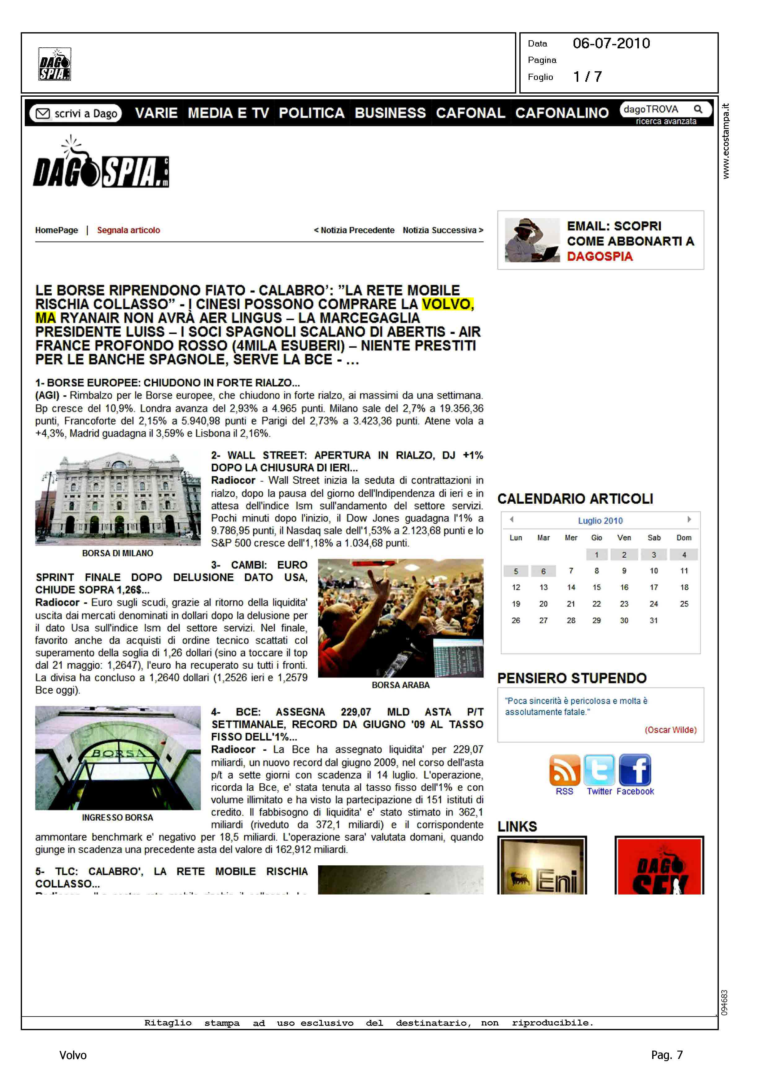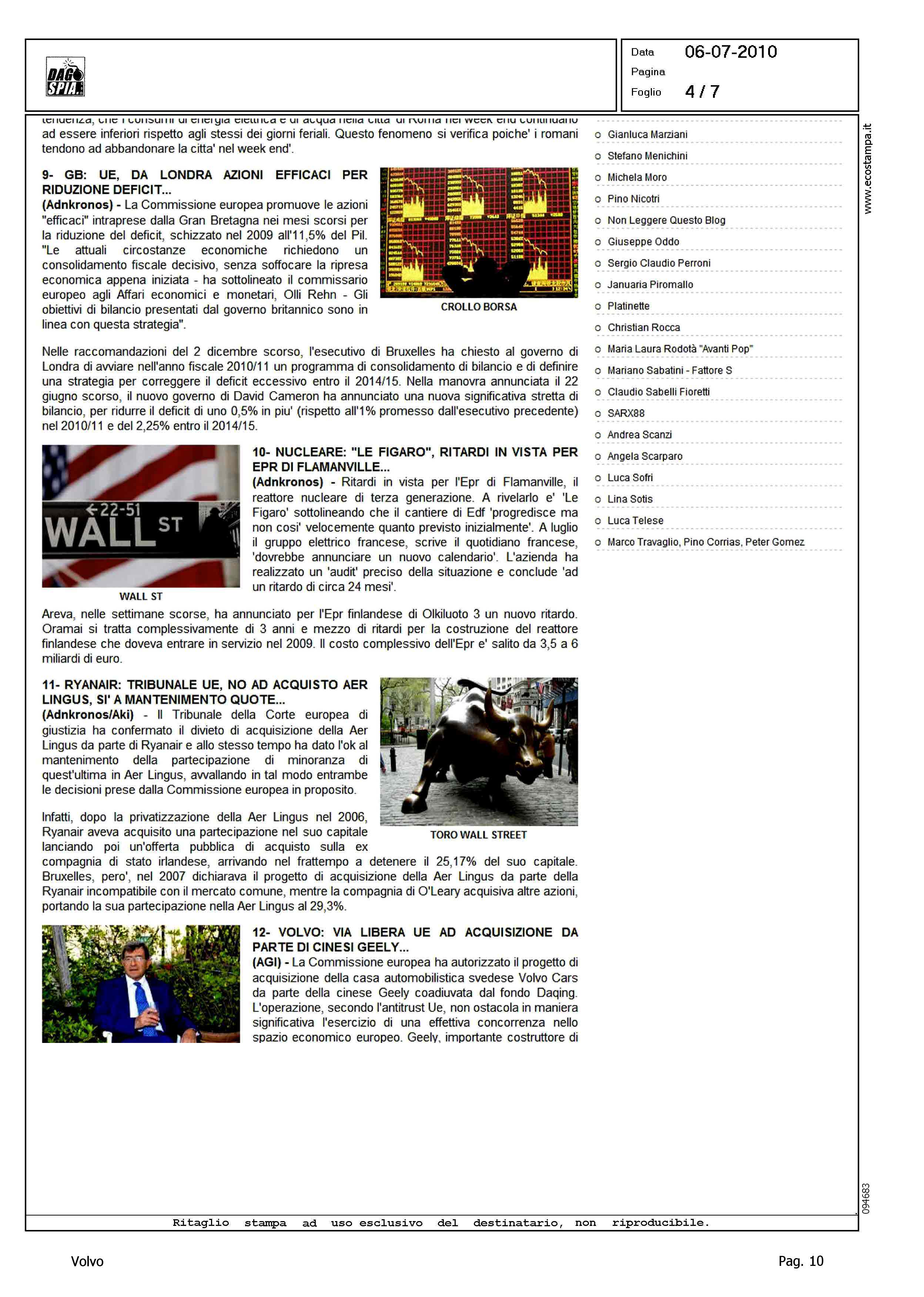 Author: Line: Corporate Model: Corporate Subject: - Title: I CINESI POSSONO COMPRARE LA VOLVO,...Highlight: VENDITA VOLVO ALLA GEELY, APPROVAZIONE UE
