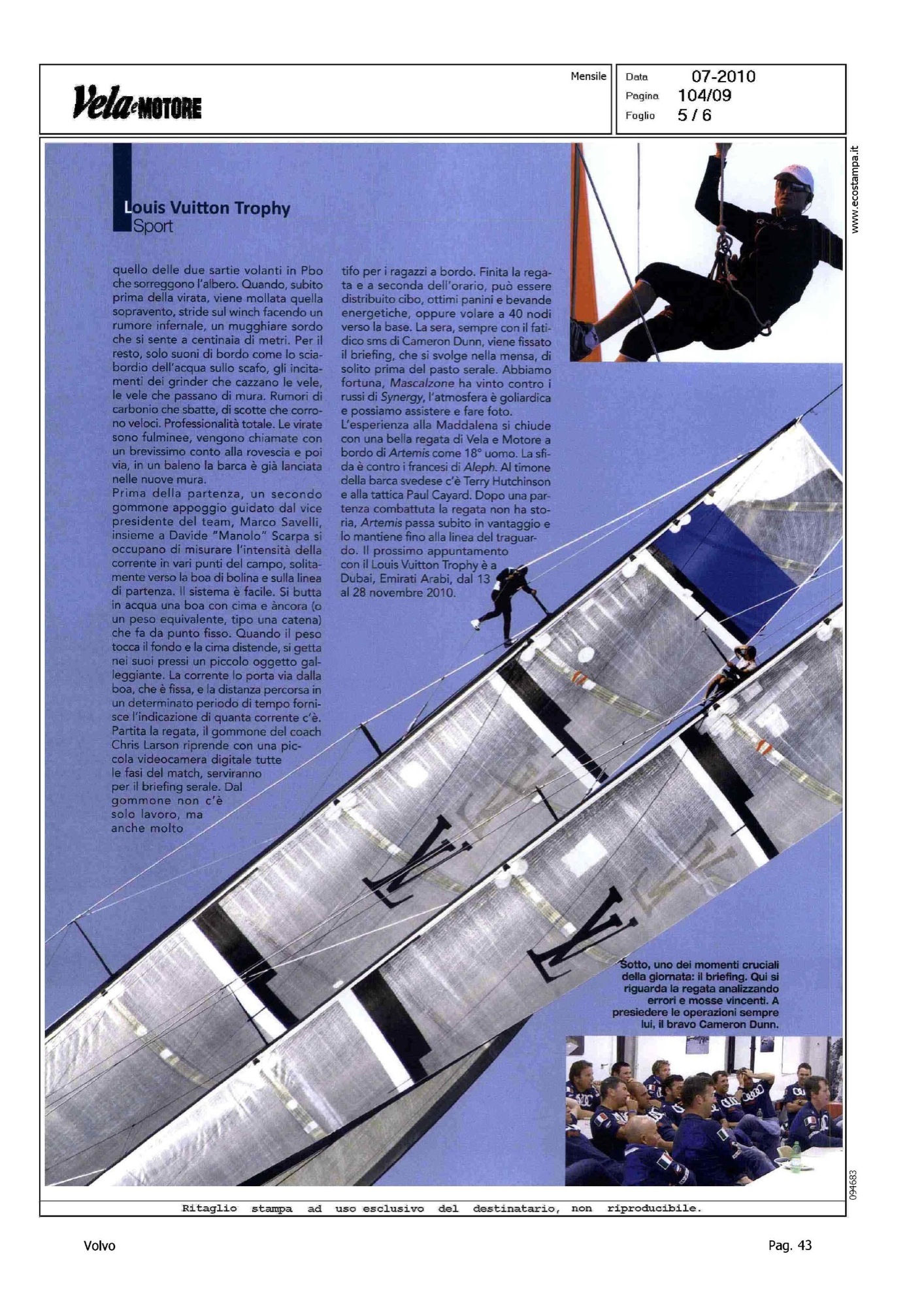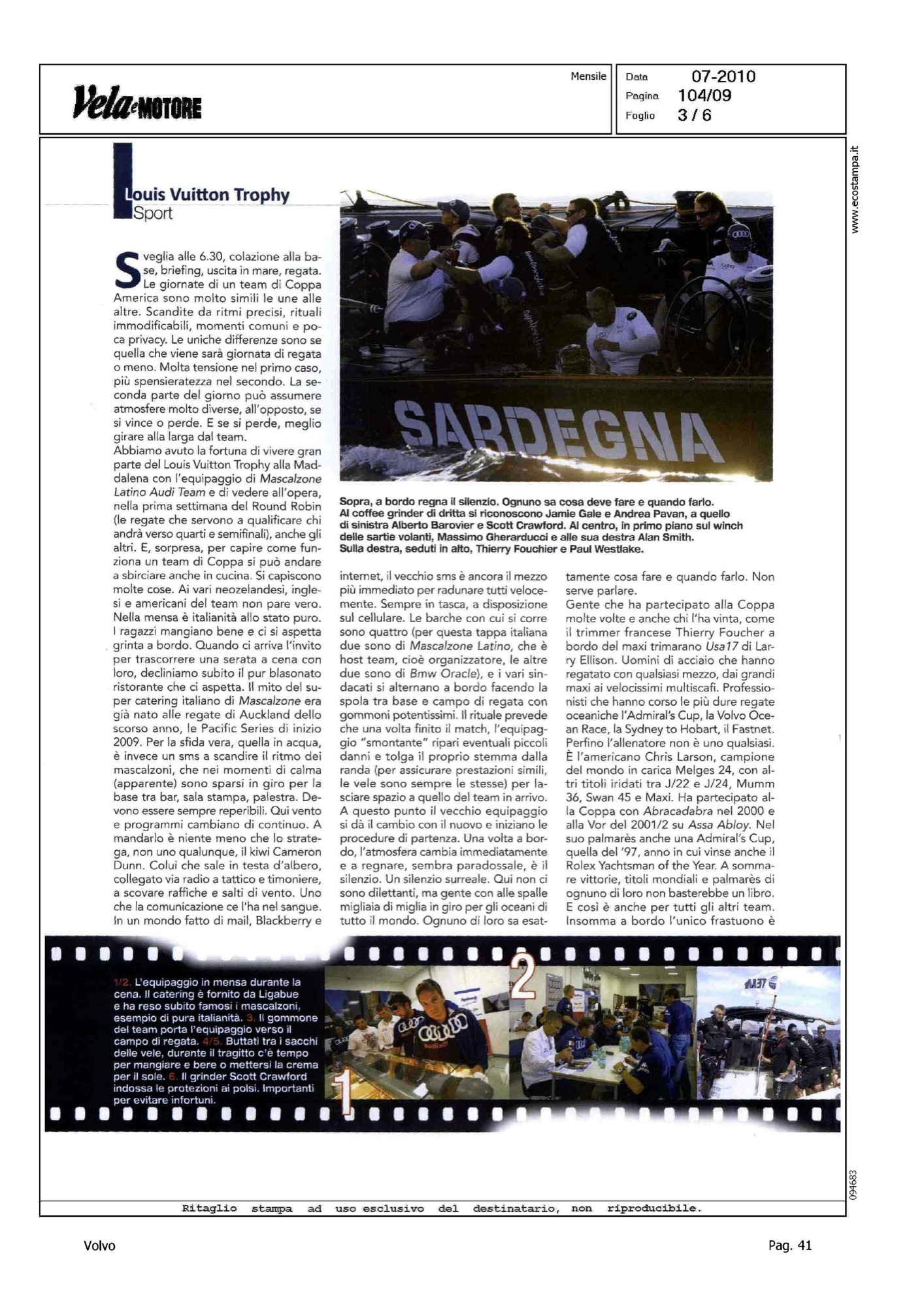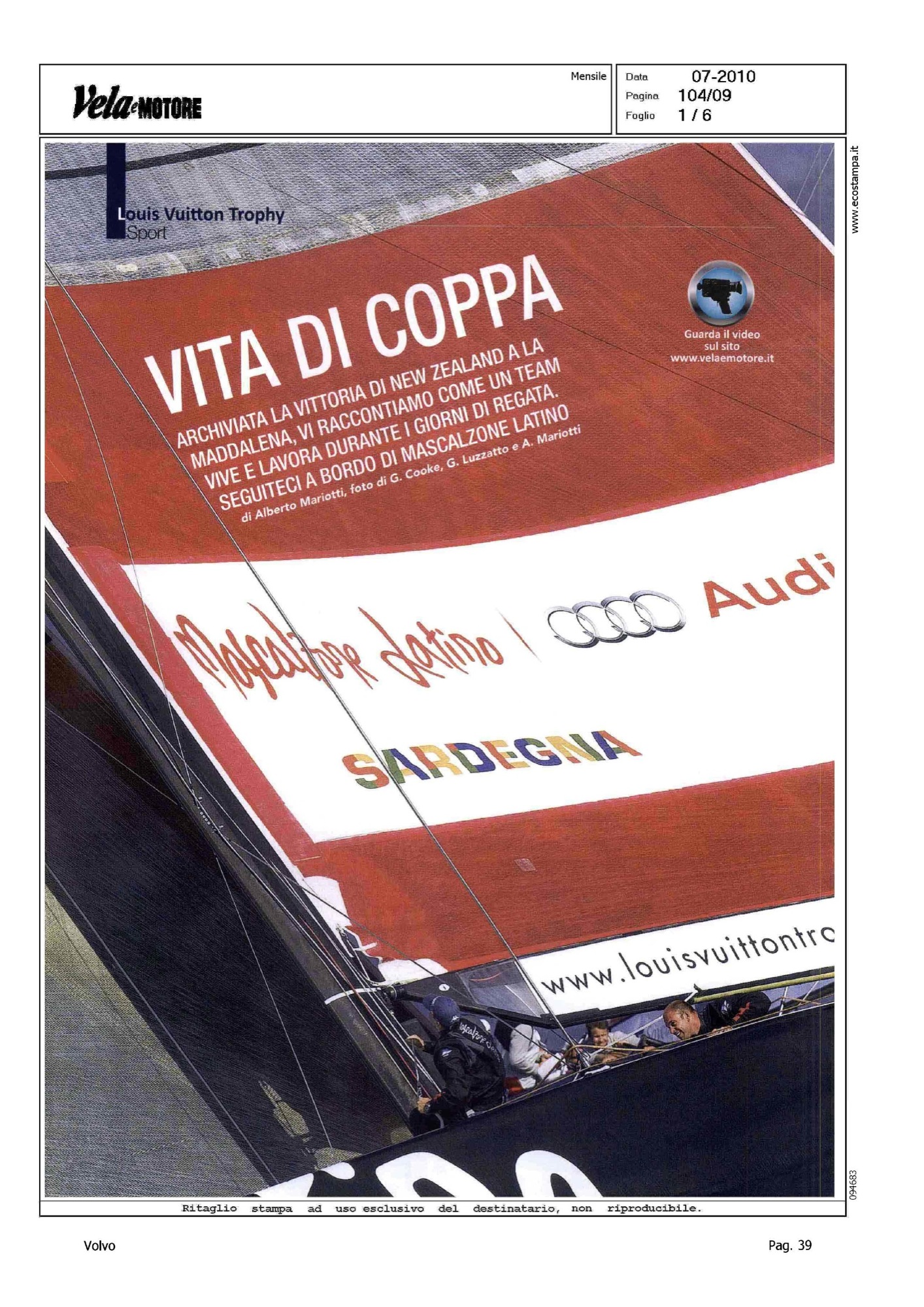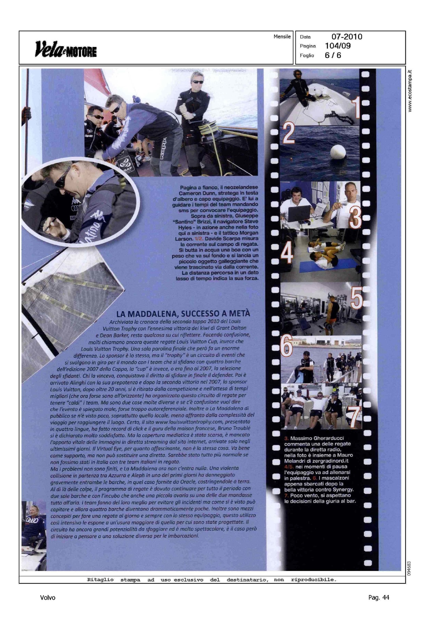Author: MARIOTTI, ALBERTOLine: Corporate Model: Corporate Subject: Volvo Ocean Race Title: VITA DI COPPAHighlight: REGATE LV TROPHY LA MADDALENA