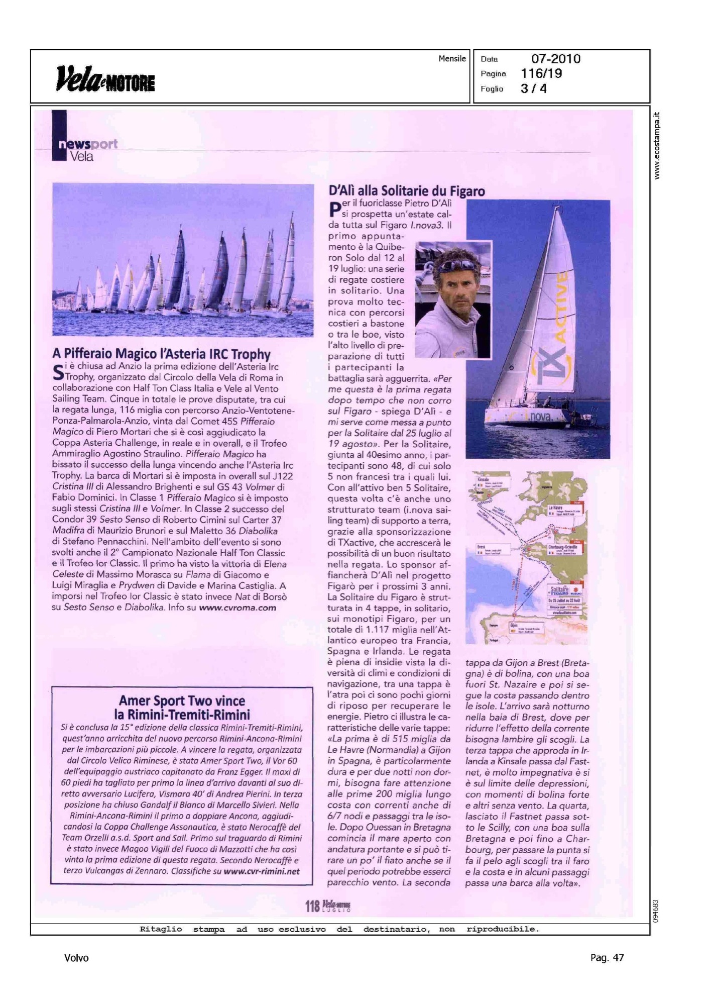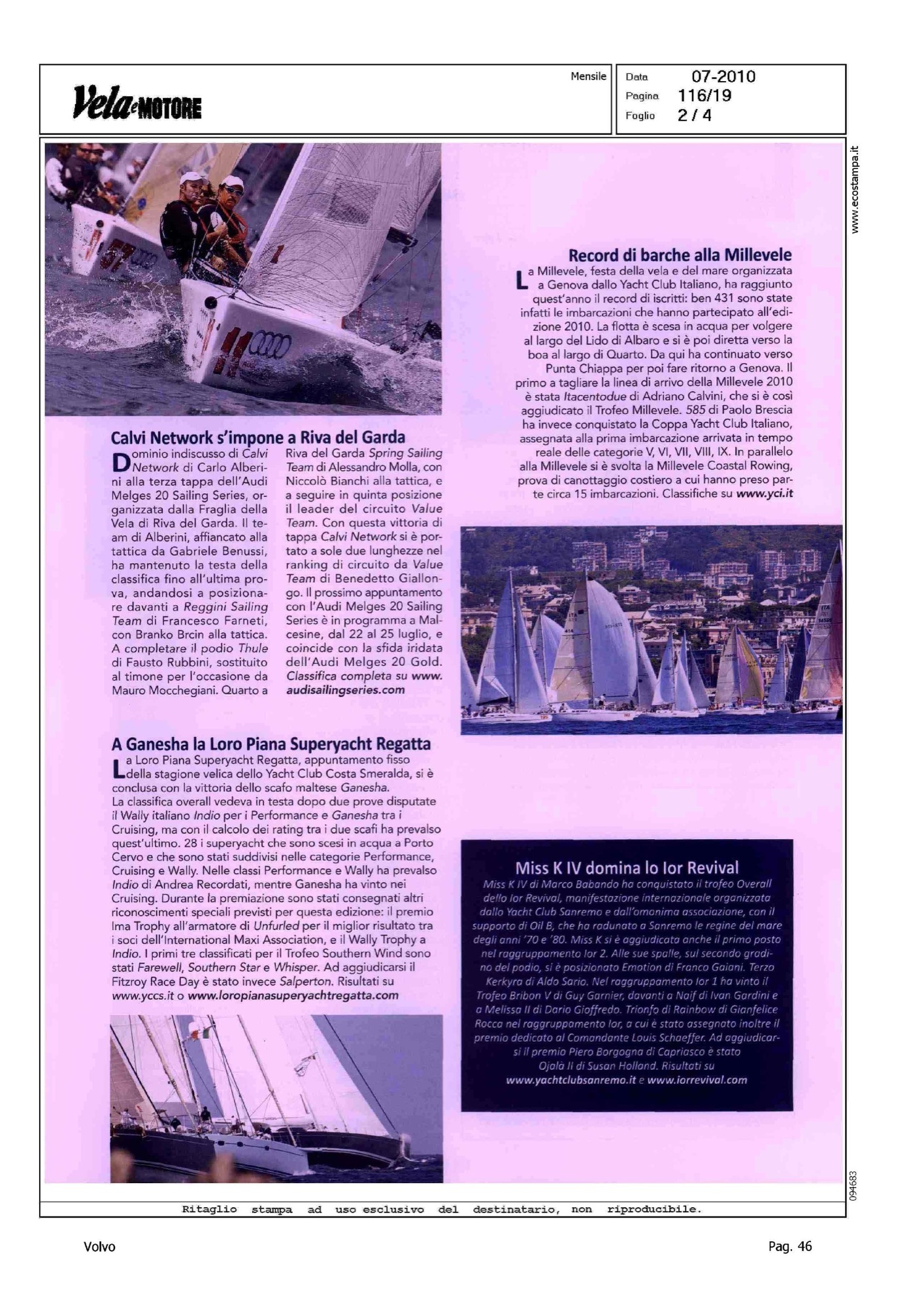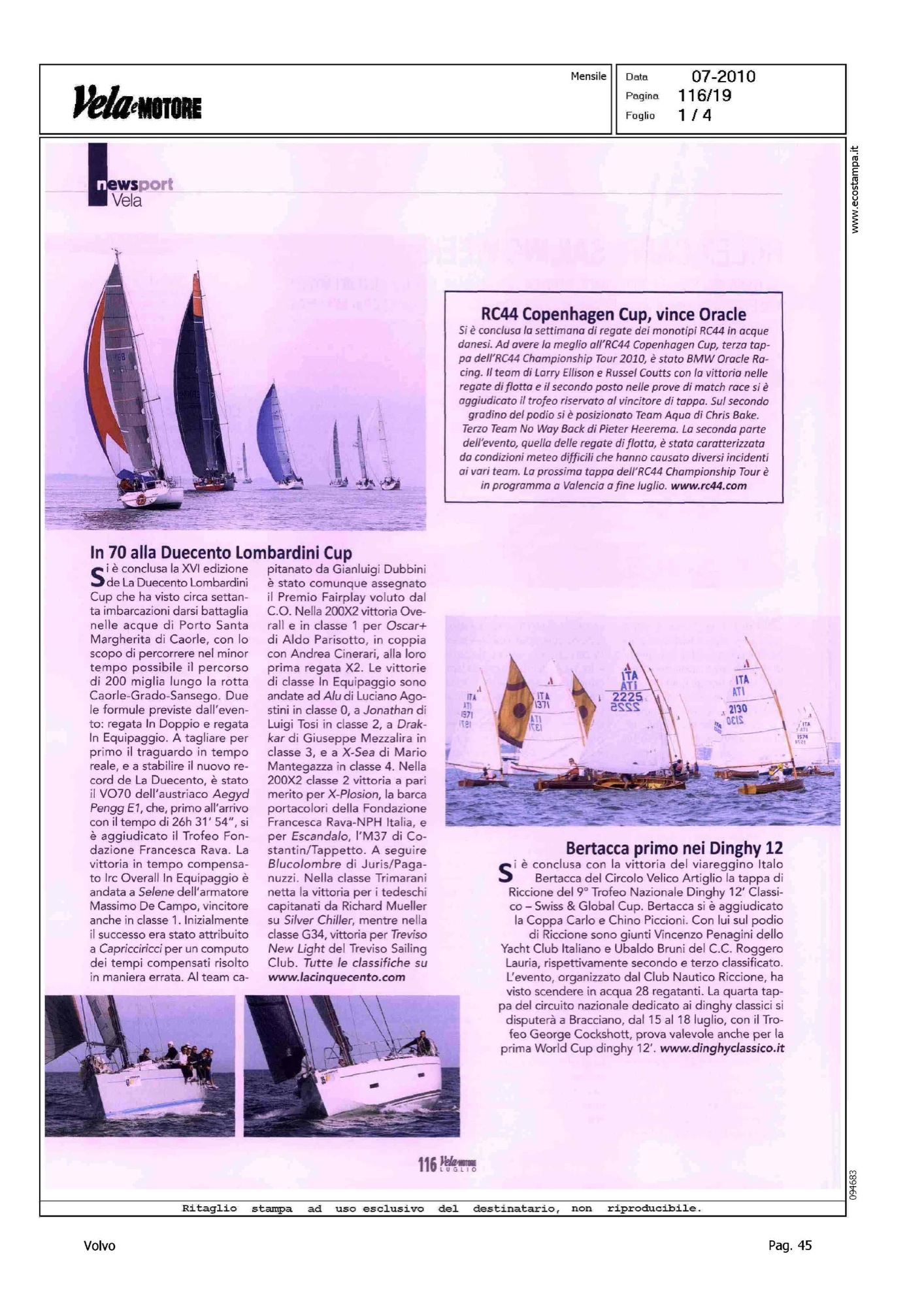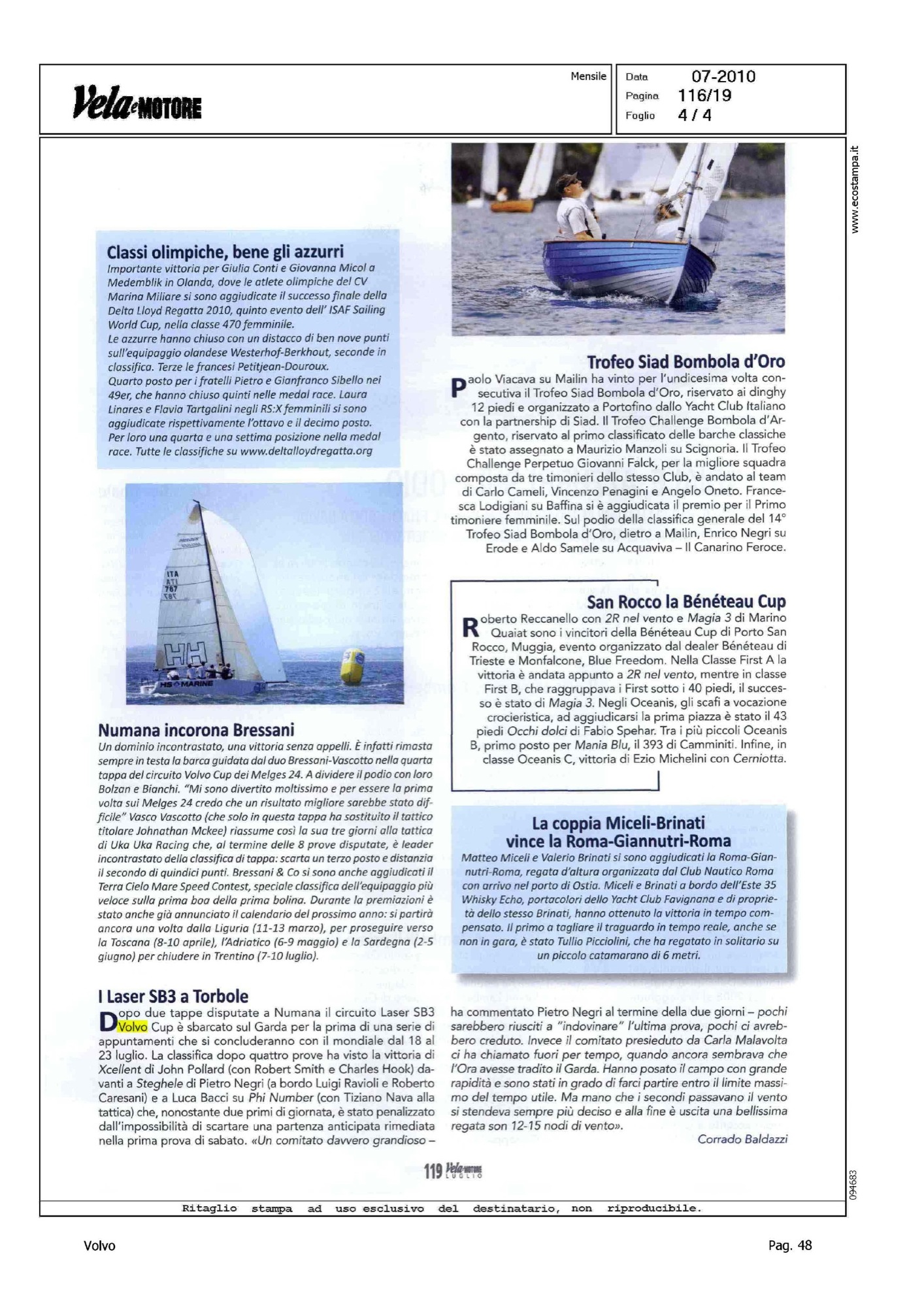 Highlight: VOLVO OCEAN RACE, VO70 ALLA DUECENTO LOMBARDINI CUP - MELGES 24, REGATA DI NUMANA - LASER SB-3, REGATA DI TORBOLE