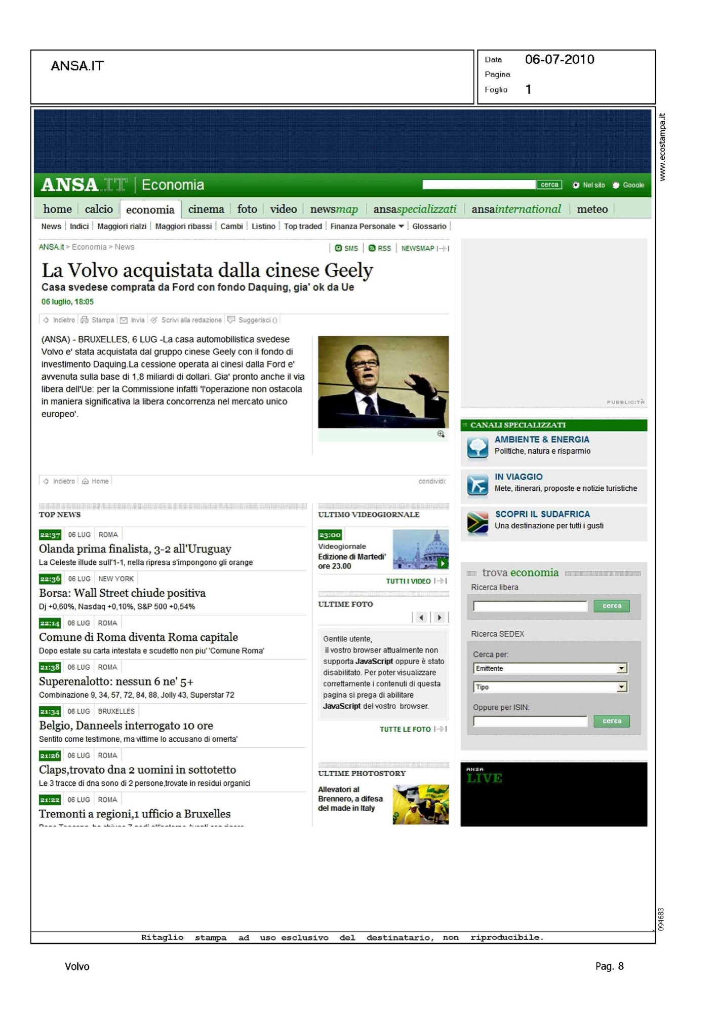 Author: Line: Corporate Model: Corporate Subject: - Title: LA VOLVO ACQUISTATA DALLA CINESE GEELYHighlight: VENDITA VOLVO ALLA GEELY, APPROVAZIONE UE