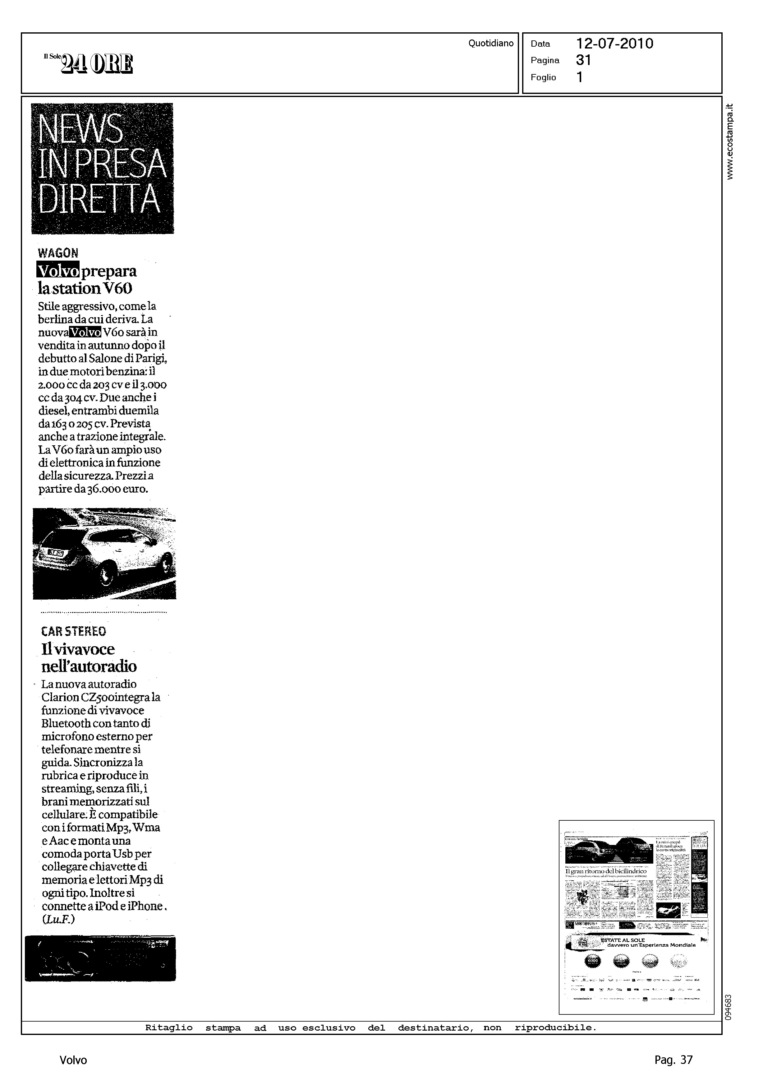Author: Line: Corporate Model: Corporate Subject: - Title: NEWS IN PRESA DIRETTA - WAGON - VOLVO PREPARA LA STATION V60Highlight: DESIGN - SALONE DI PARIGI - MOTORI - SICUREZZA - PREZZI