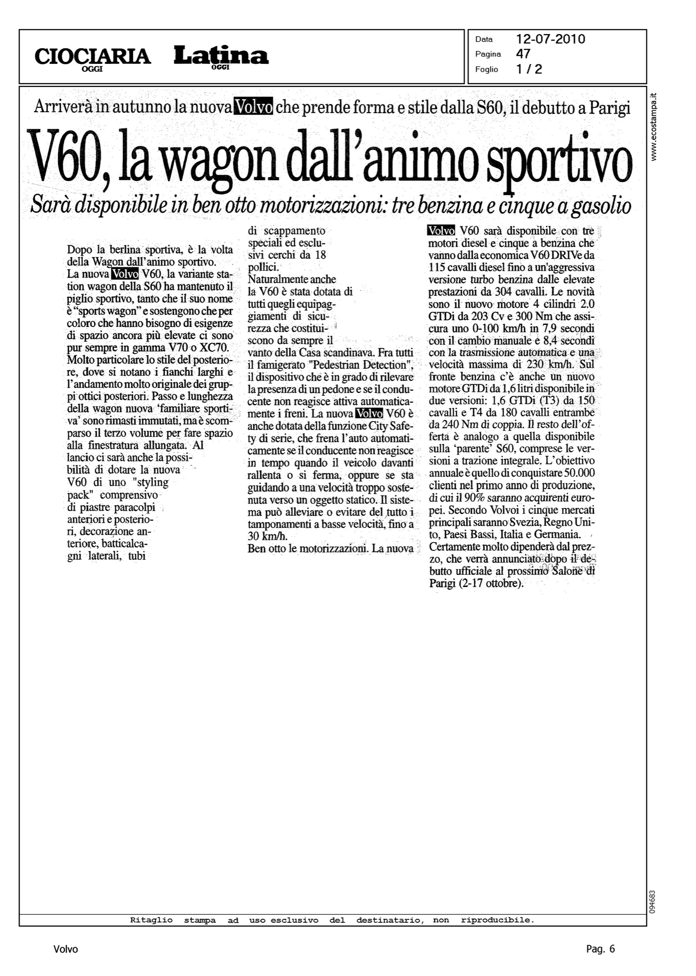 Author: Line: Corporate Model: Corporate Subject: - Title: V60, LA WAGON DALL'ANIMO SPORTIVOHighlight: DESIGN - STYLING PACK - ACCESSORI - SICUREZZA - PEDESTRIAN DETECTION - MOTORI - PRESTAZIONI - PARIGI