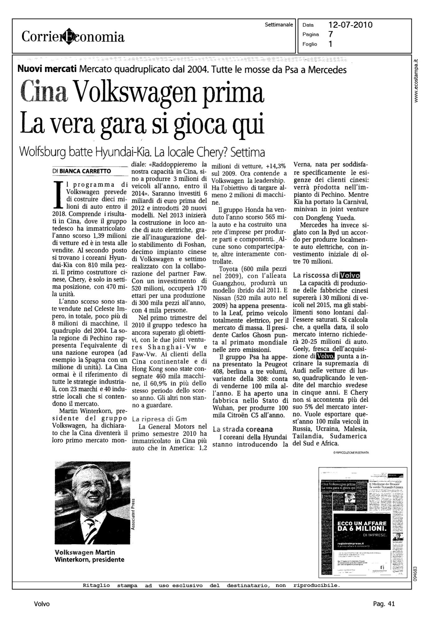 Author: CARRETTO, BIANCALine: Corporate Model: Corporate Subject: - Title: CINA. VOLKSWAGEN PRIMA - LA VERA GARA SI GIOCA QUIHighlight: MERCATO AUTO CINA - SVILUPPO VENDITE VOLVO IN CINA - GEELY