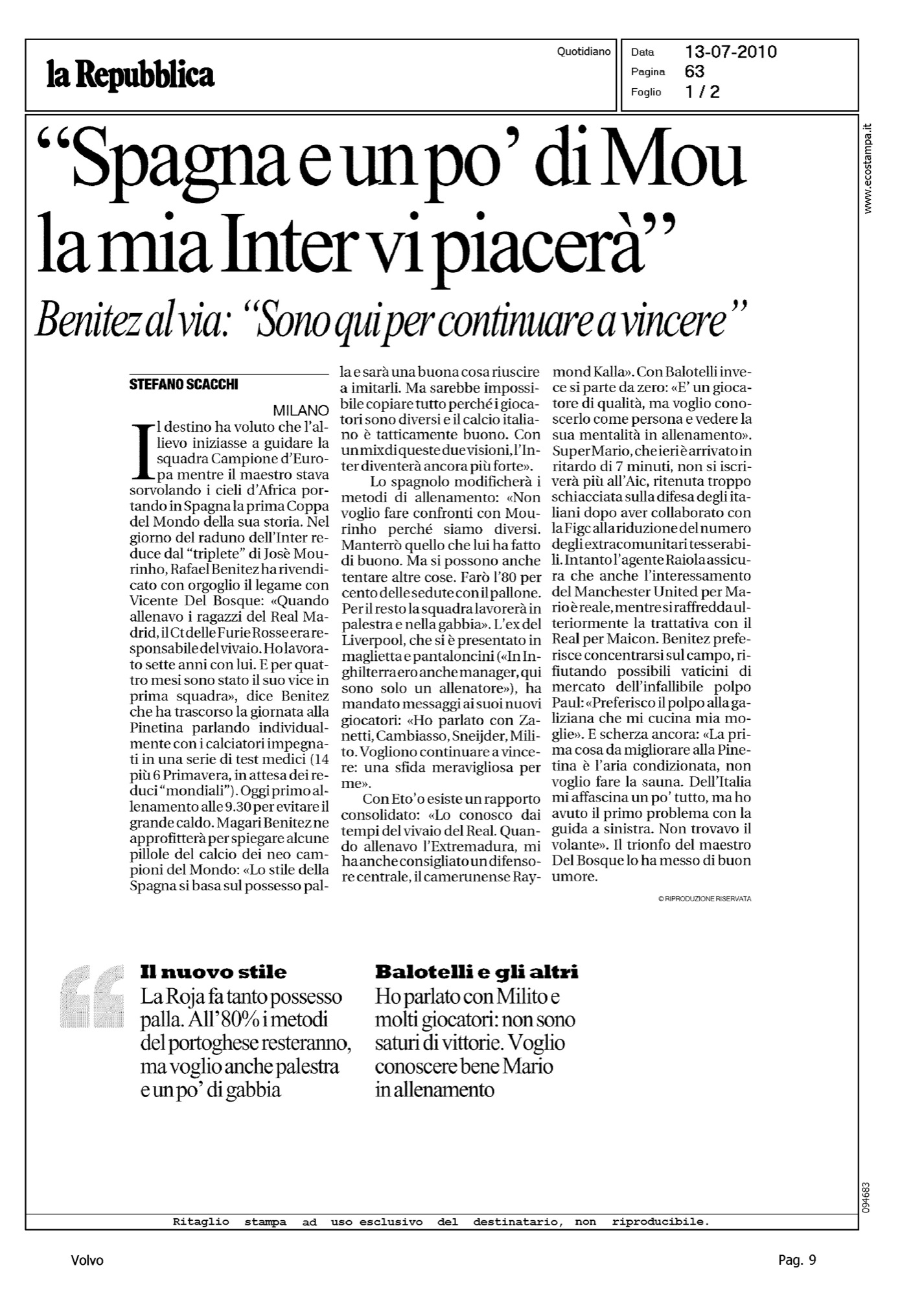 Author: SCACCHI, STEFANOLine: Corporate Model: Corporate Subject: - Title: "SPAGNA E UN PO' DI MOU LA MIA INTER VI PIACERA' "Highlight: BENITEZ - FOTO WALL