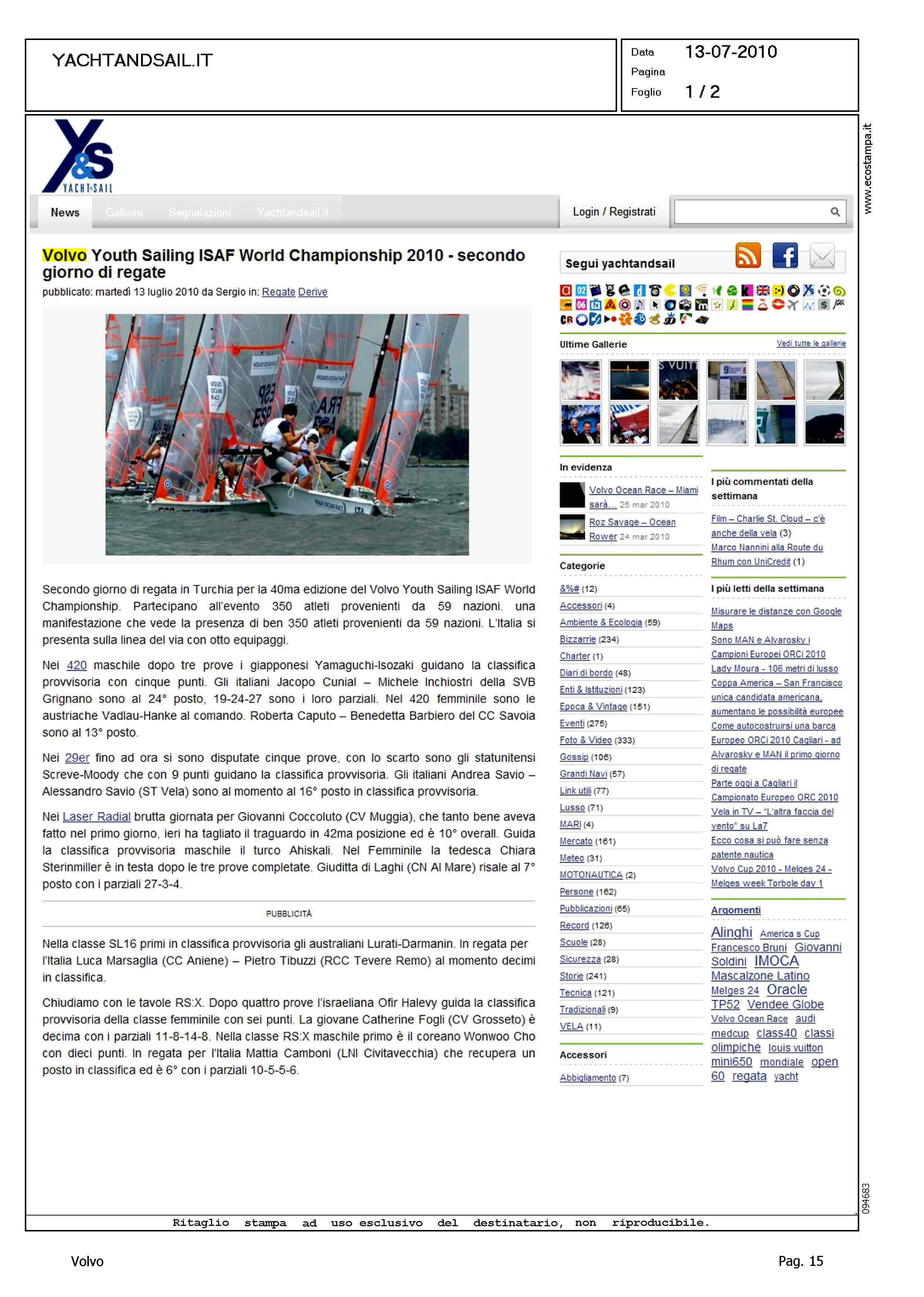 Author: Line: Corporate Model: Corporate Subject: Volvo Cup Title: VOLVO YOUTH SAILING ISAF WORLD CHAMPIONSHIP 2010 - SECONDO GIORNO DI REGATEHighlight: VOLVO YOUTH SAILING ISAF WORLD CHAMPIONSHIP - REGATE IN TURCHIA