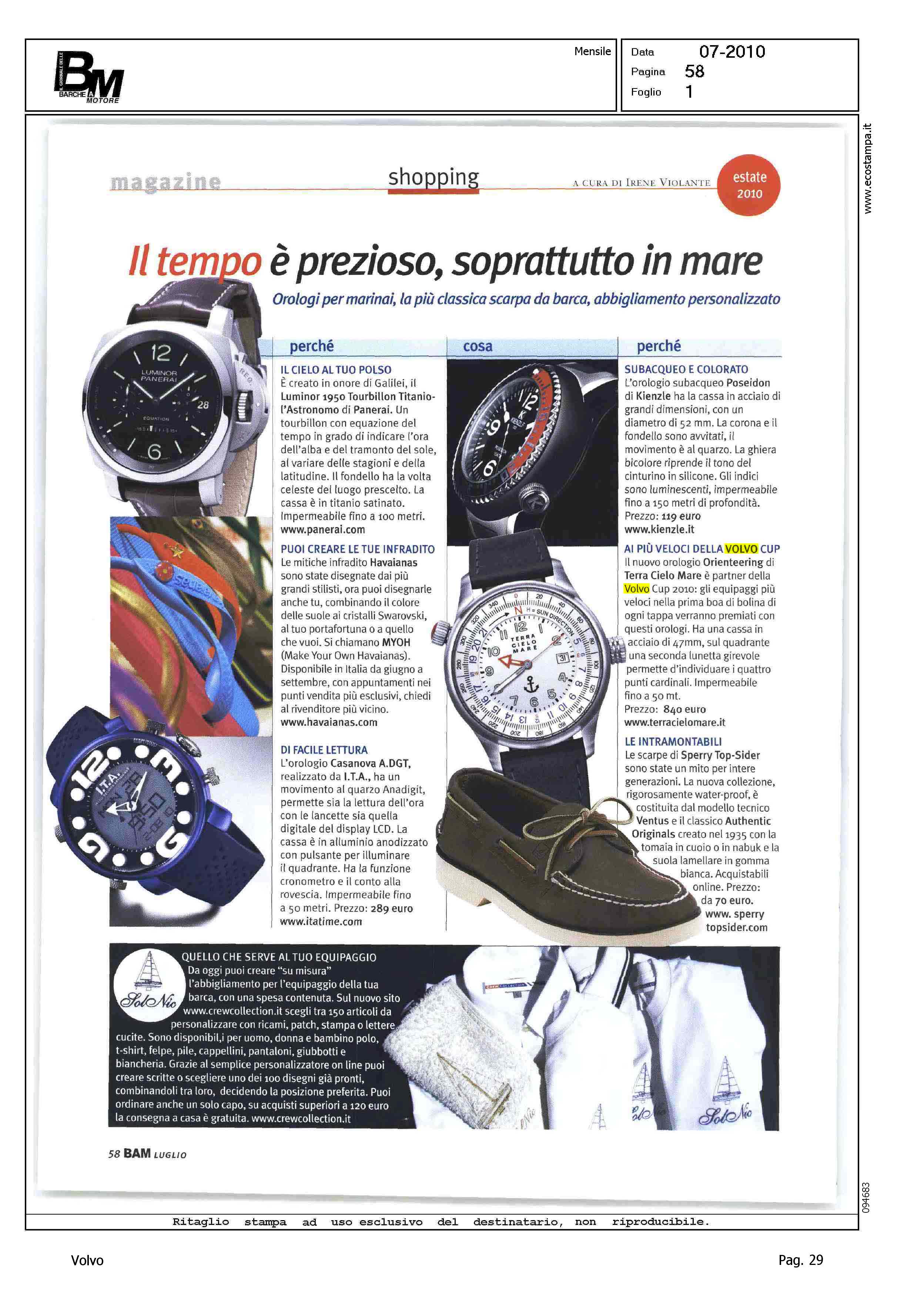 Author: VIOLANTE, IRENELine: Corporate Model: Corporate Subject: Volvo Cup Title: MAGAZINE - SHOPPING - IL TEMPO E' PREZIOSO, SOPRATTUTTO IN MAREHighlight: TERRACIELOMARE SPONSOR VOLVO CUP