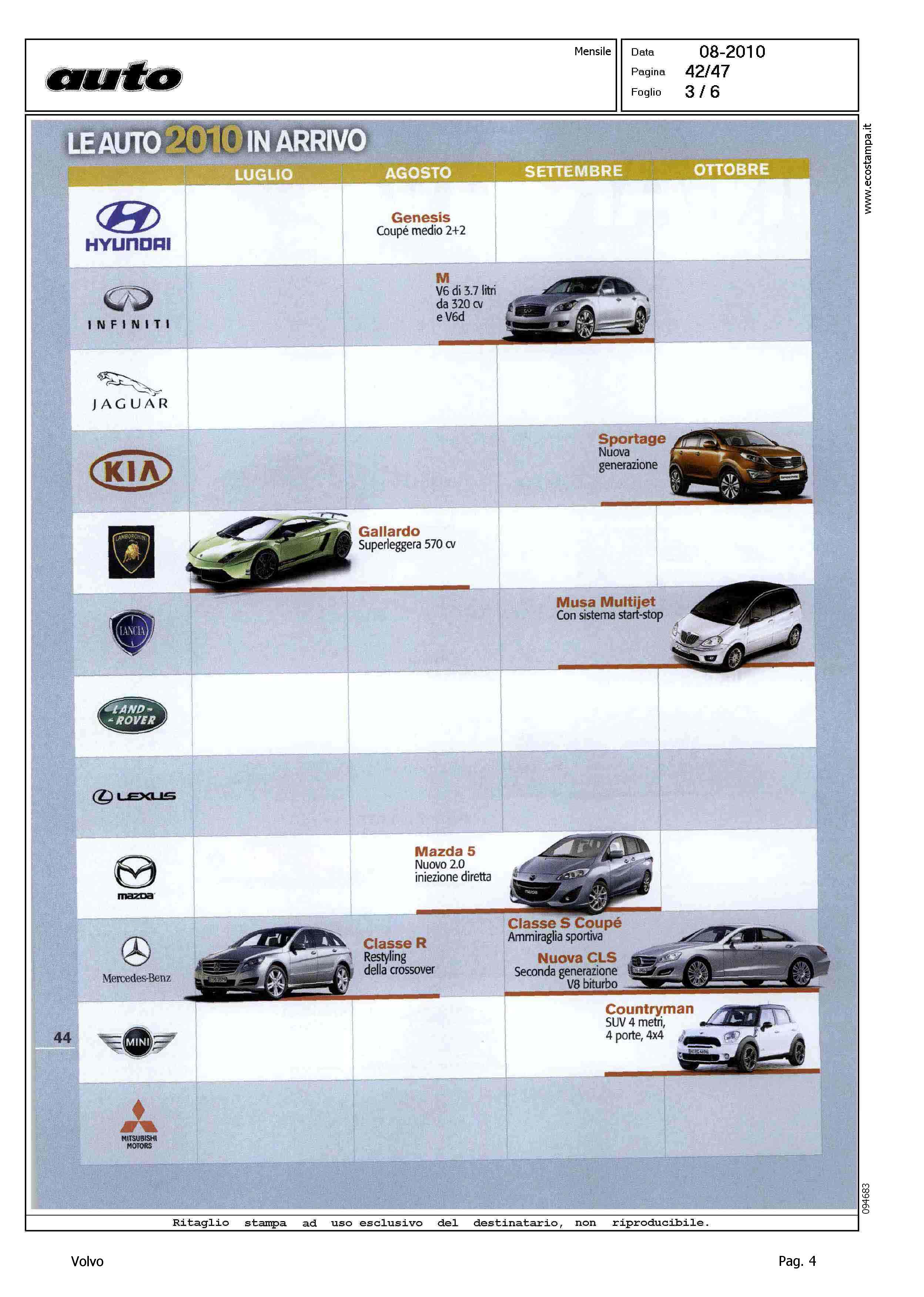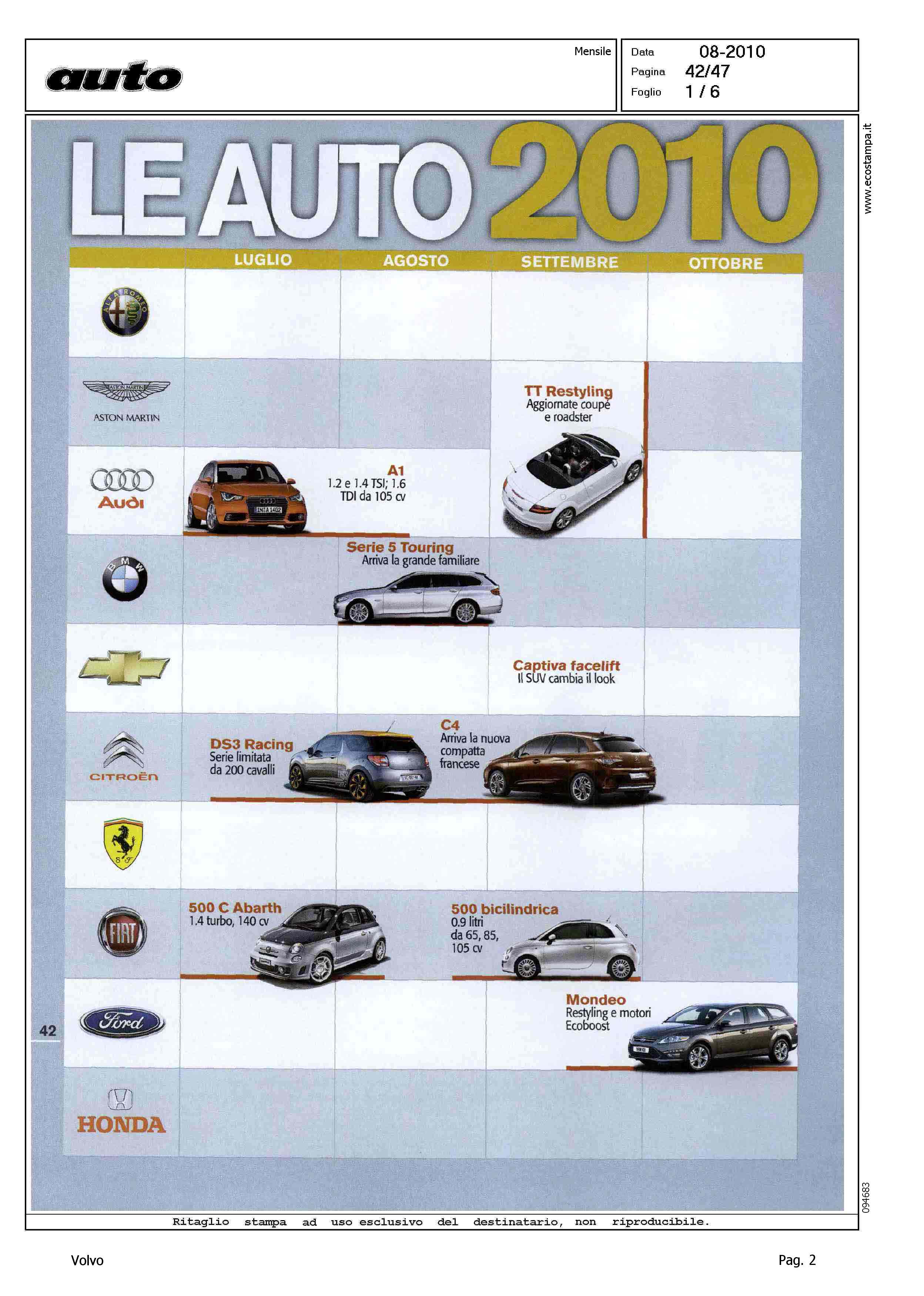 Author: Line: Corporate Model: Corporate Subject: - Title: LE AUTO 2010Highlight: CALENDARIO NOVITA'