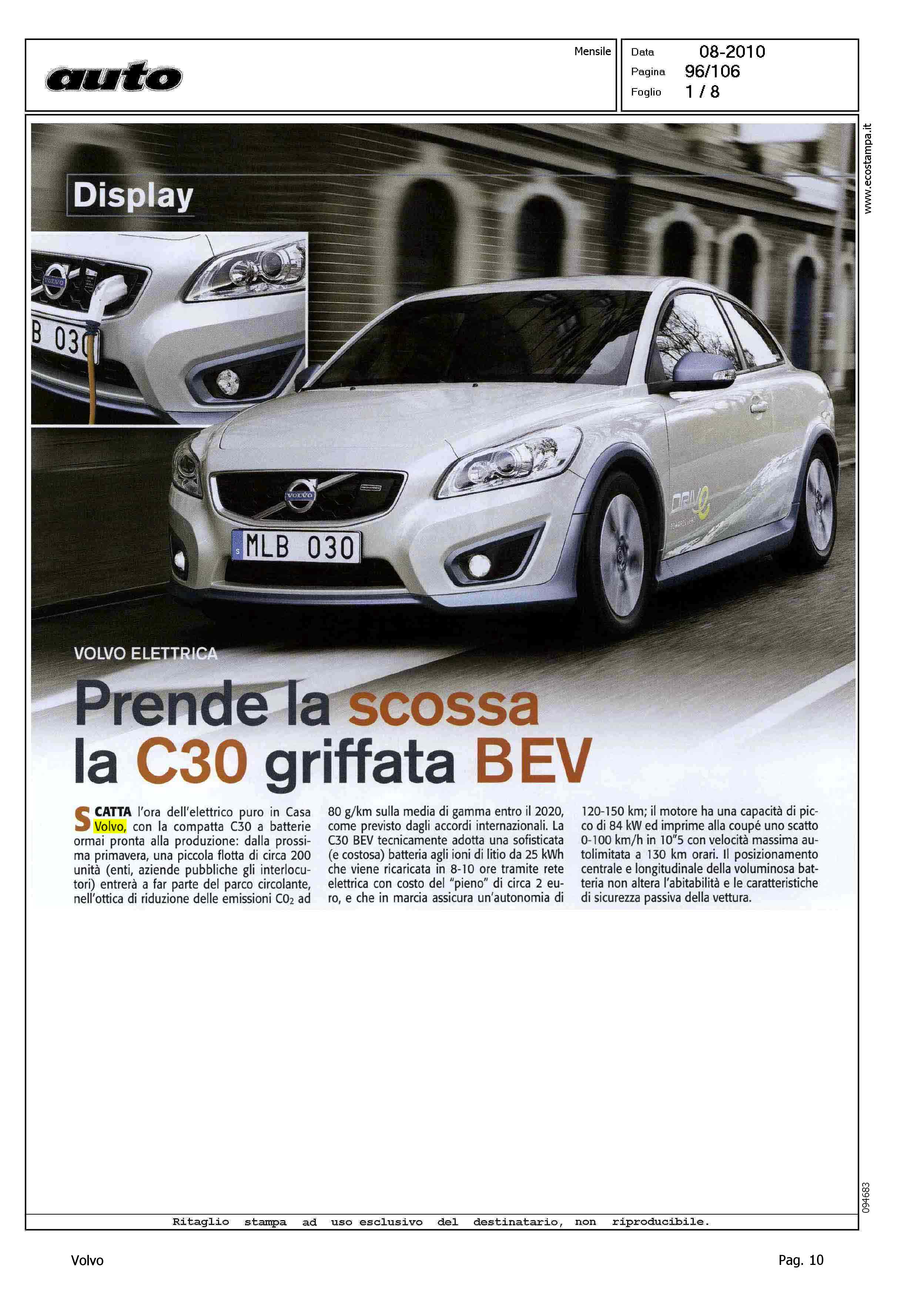 Title: VOLVO ELETTRICA - PRENDE LA SCOSSA LA C30 GRIFFATA BEV