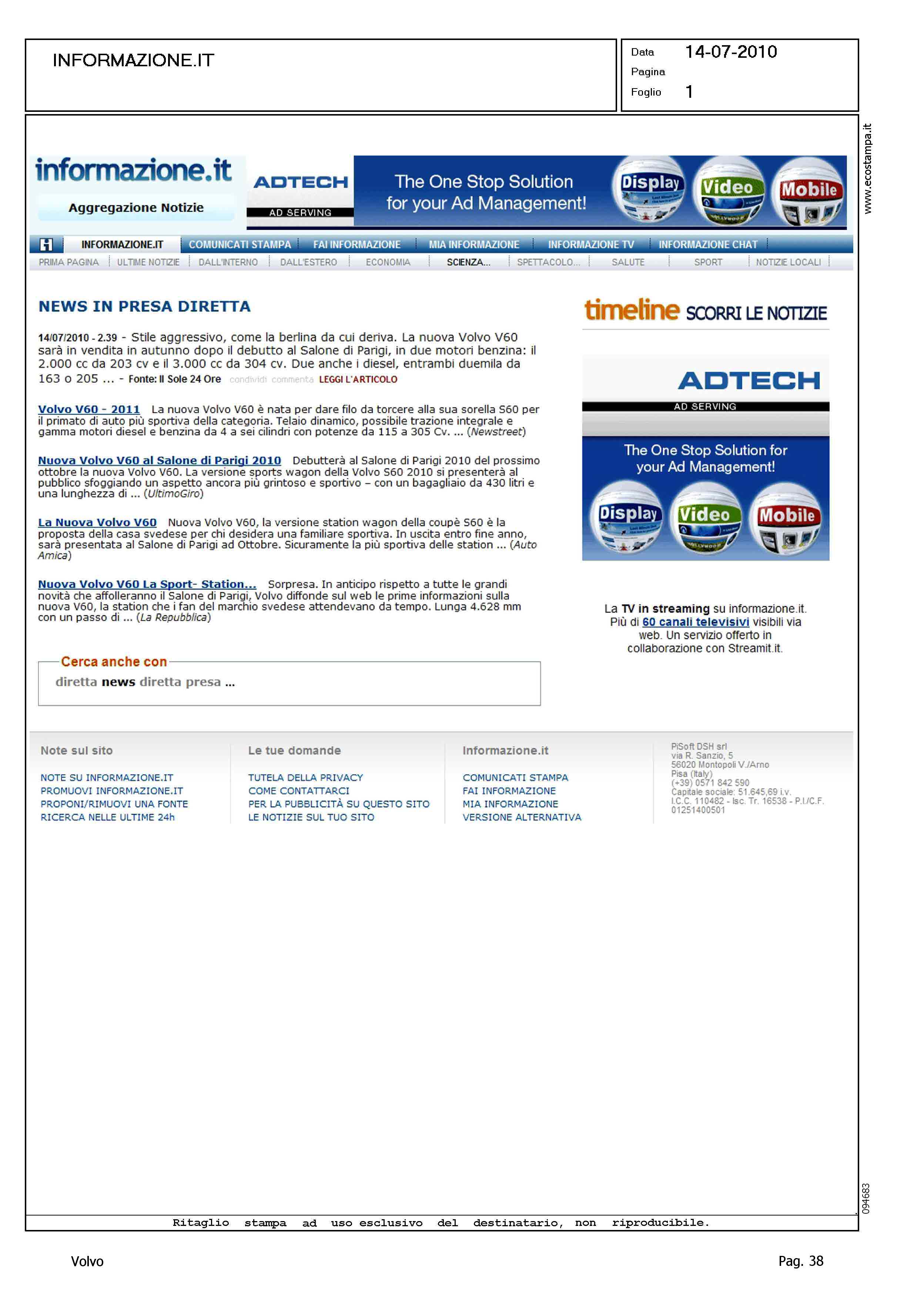 Author: Line: Corporate Model: Corporate Subject: - Title: AGGREGATORE DI NOTIZIE ON LINE - TITOLI VARI - CINQUE SEGNALAZIONIHighlight: AGGREGATORE DI NOTIZIE ON LINE - 5 POSIZIONI SEGNALATE RELATIVE AD UNVEILING VOLVO V60