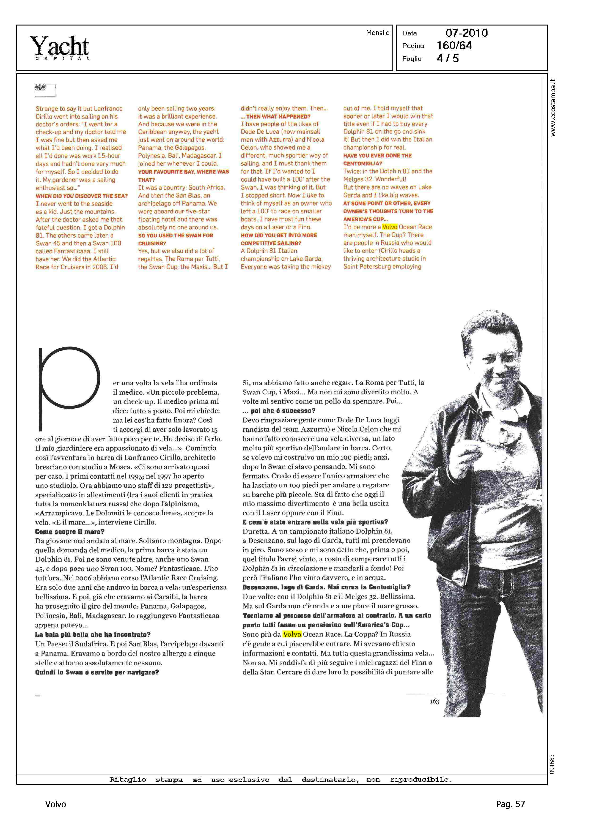 Author: MARTINELLI, EMILIOLine: Corporate Model: Corporate Subject: Volvo Ocean Race Title: FUORI DAL COROHighlight: PROFILO ED INTERVISTA - ARMATORE E TIMONIERE