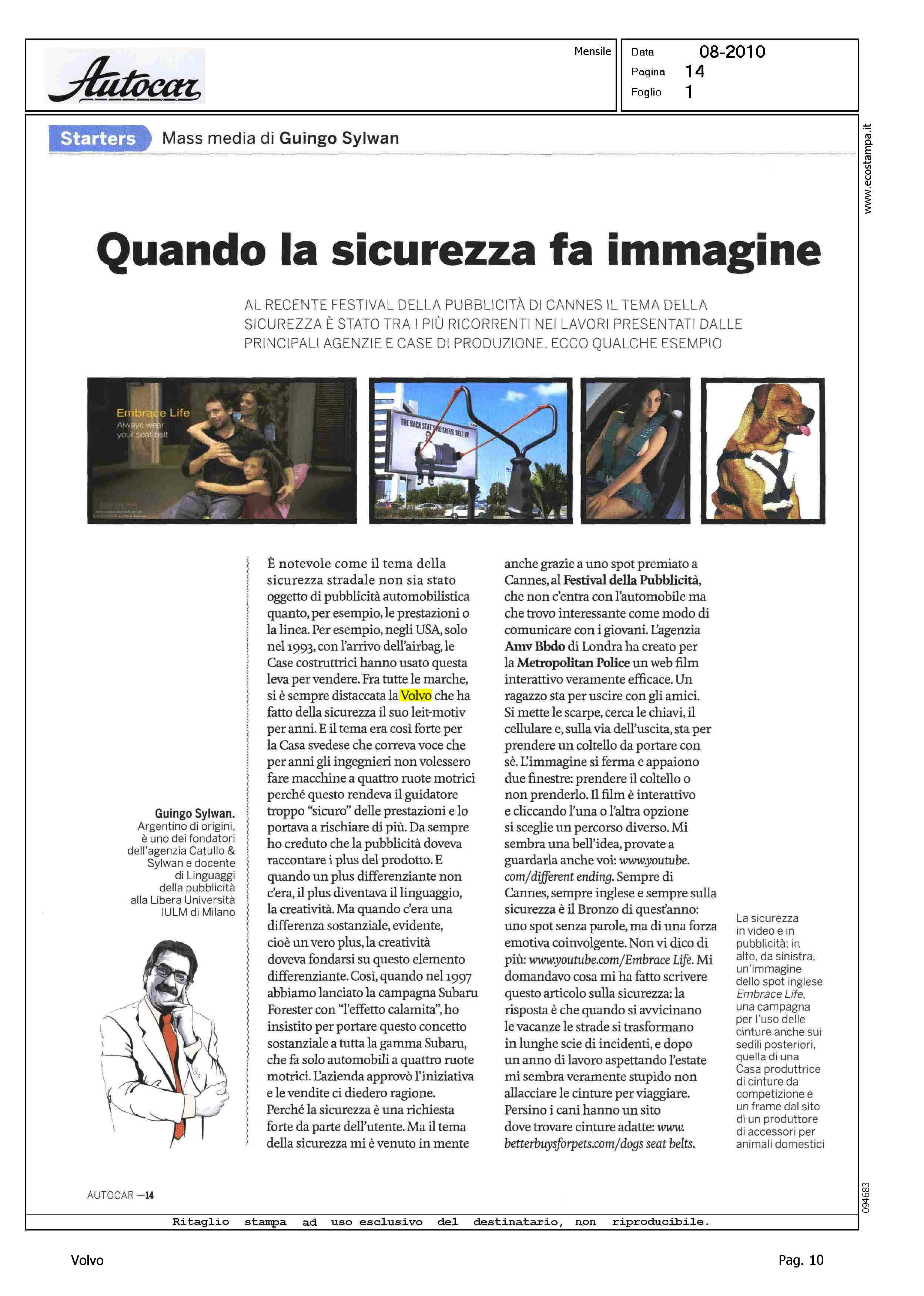Author: SYLWAN, GUINGOLine: Corporate Model: Corporate Subject: - Title: QUANDO LA SICUREZZA FA IMMAGINEHighlight: SICUREZZA - VALORE VOLVO