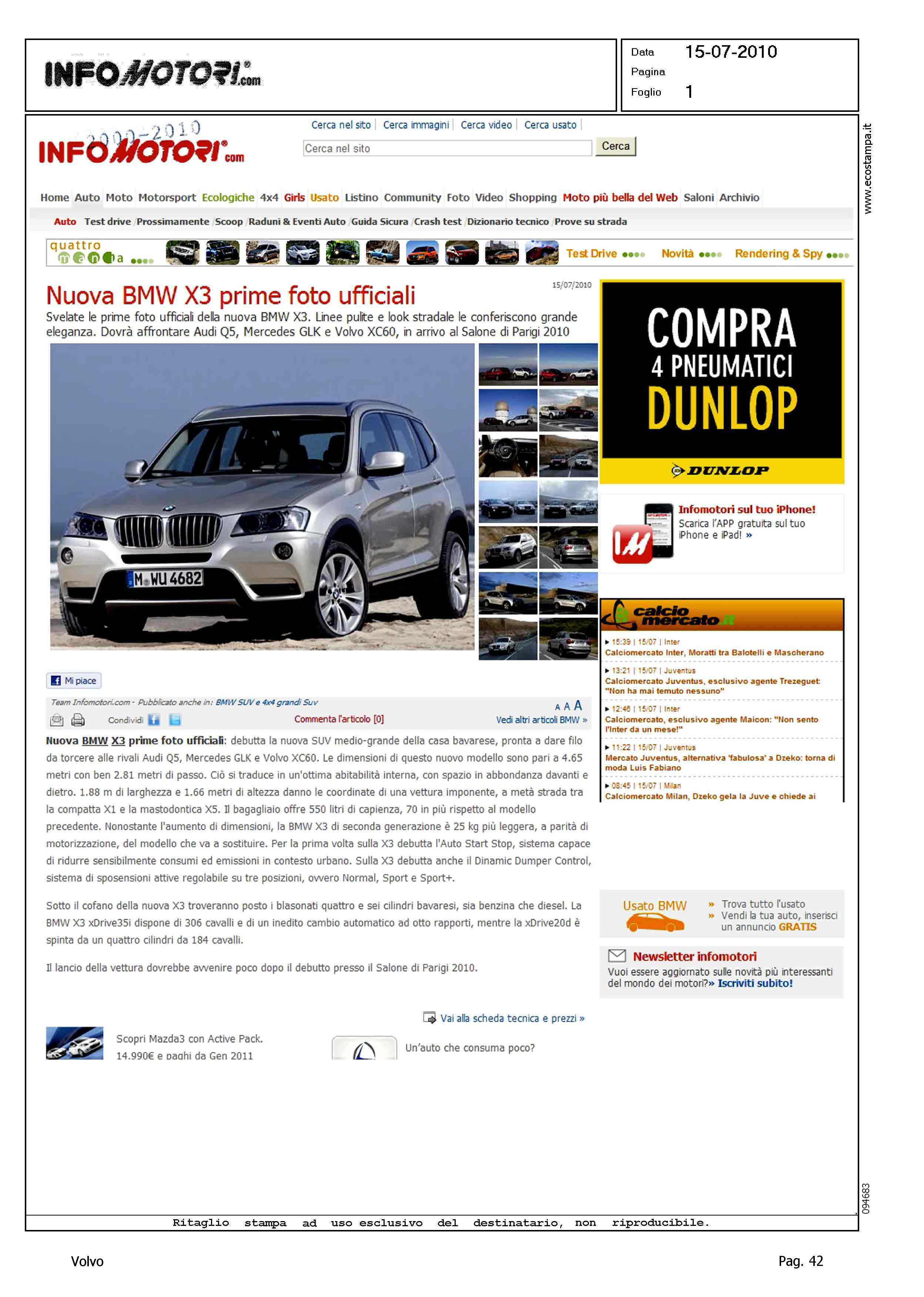 Author: Line: XC60 Model: Subject: - Title: NUOVA BMW X3 PRIME FOTO UFFICIALIHighlight: VOLVO XC60, COMPETITOR DI: NUOVA BMW X3, AUDI Q5, MERCEDES GLK
