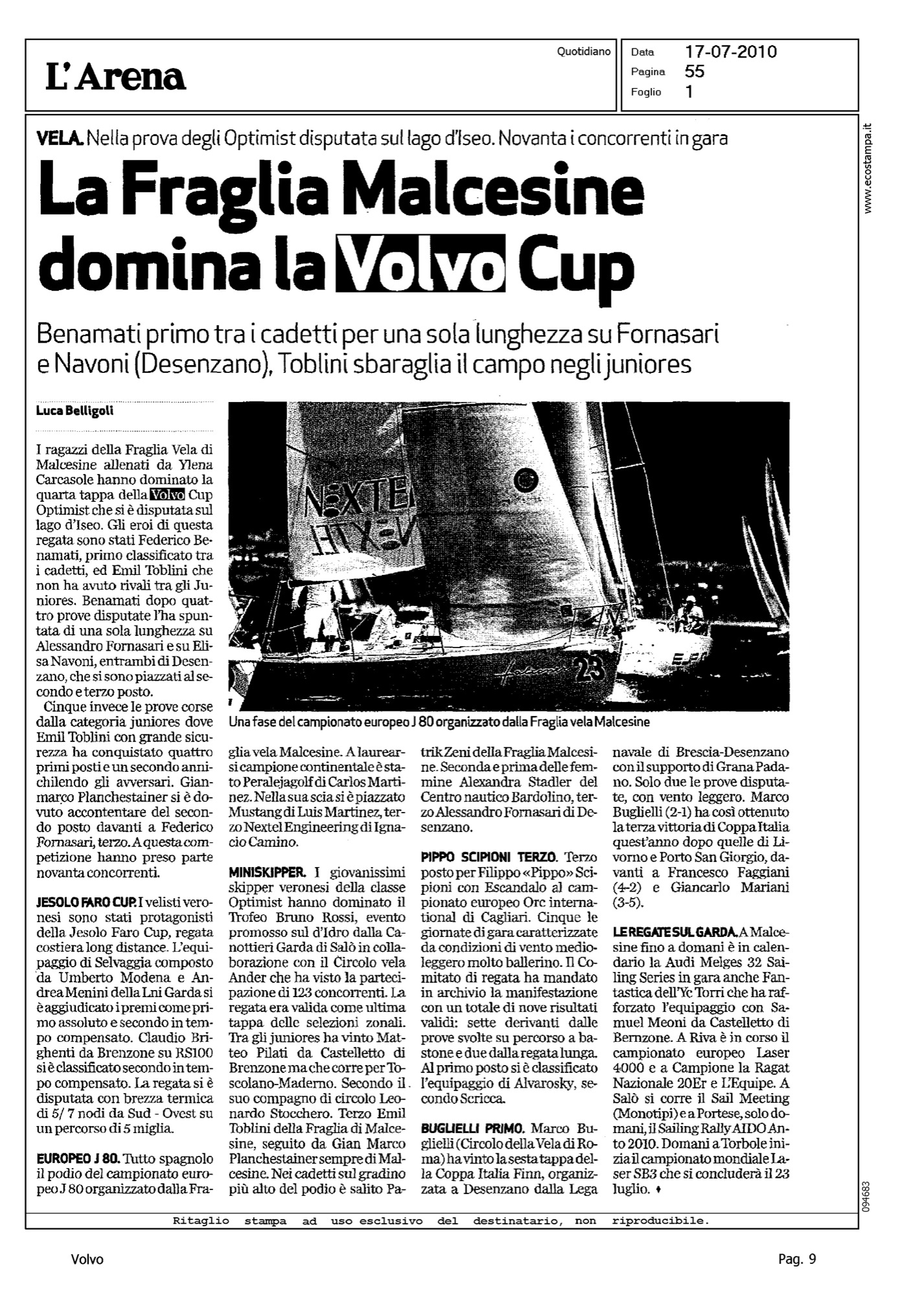 Author: BELLIGOLI, LUCALine: Corporate Model: Corporate Subject: Volvo Cup Title: LA FRAGLIA MALCESINE DOMINA LA VOLVO CUPHighlight: REGATA DI ISEO