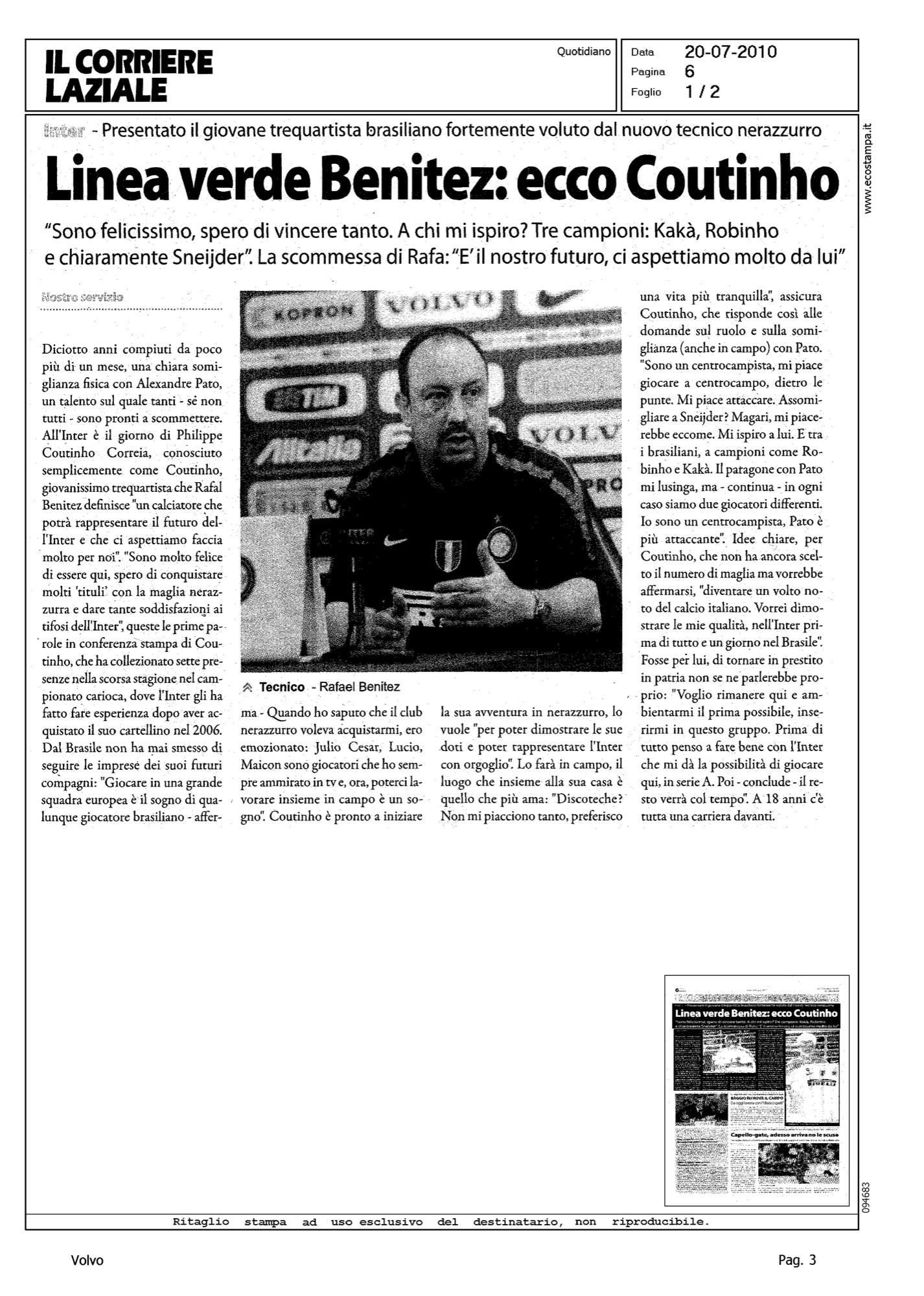Author: Line: Corporate Model: Corporate Subject: - Title: LINEA VERDE BENITEZ: ECCO COUTINHOHighlight: INTER F.C. PRESENTAZIONE GIOCATORI - FOTO, WALL, LOGO
