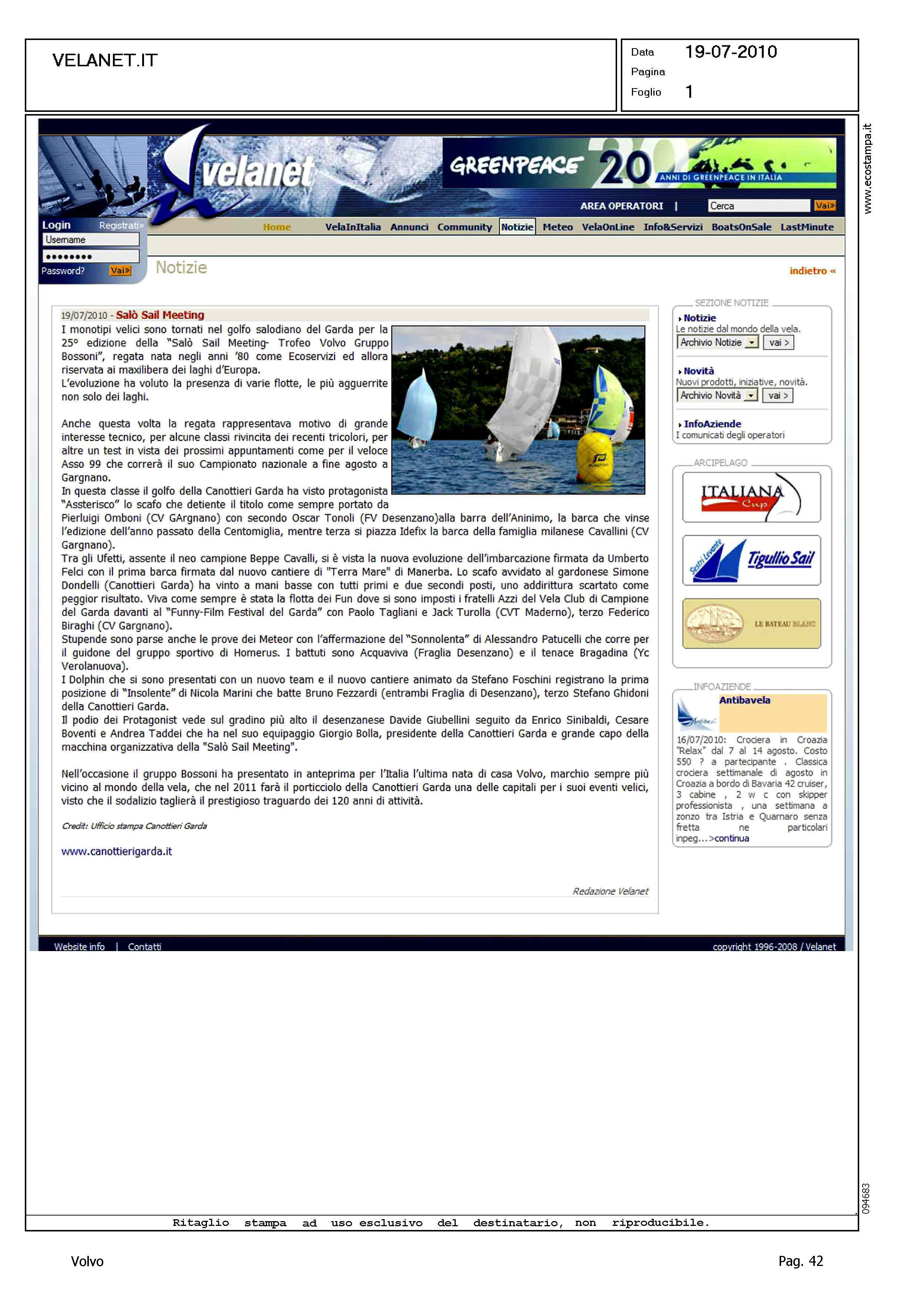Author: Line: Corporate Model: Corporate Subject: Volvo Cup Title: SALO' SAIL MEETINGHighlight: REGATA SALO' SAIL MEETING TROFEO VOLVO GRUPPO BOSSONI
