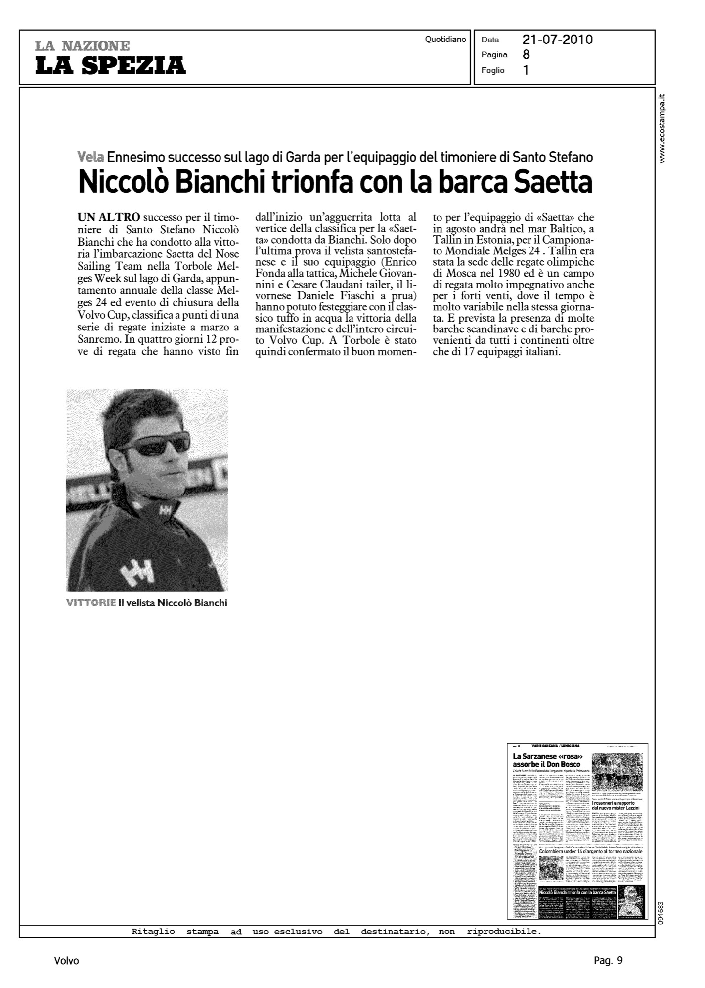 Author: Line: Corporate Model: Corporate Subject: Volvo Cup Title: SPEZIA SAILING TEAM CRESCE TRA I MELGES 24 - NICCOLO' BIANCHI TRIONFA CON LA BARCA SAETTAHighlight: (EDIZIONE LA SPEZIA) - REGATA DI TORBOLE