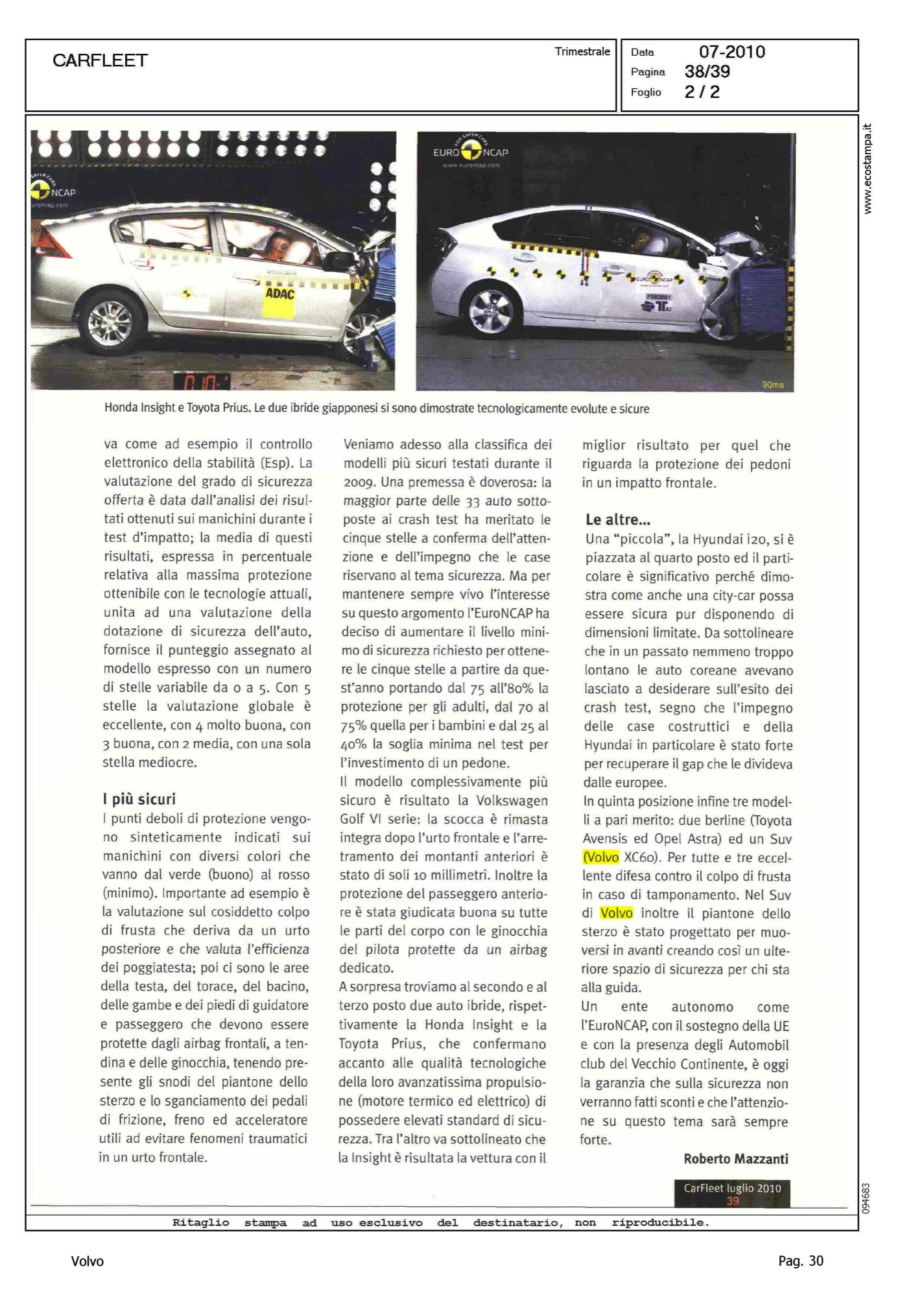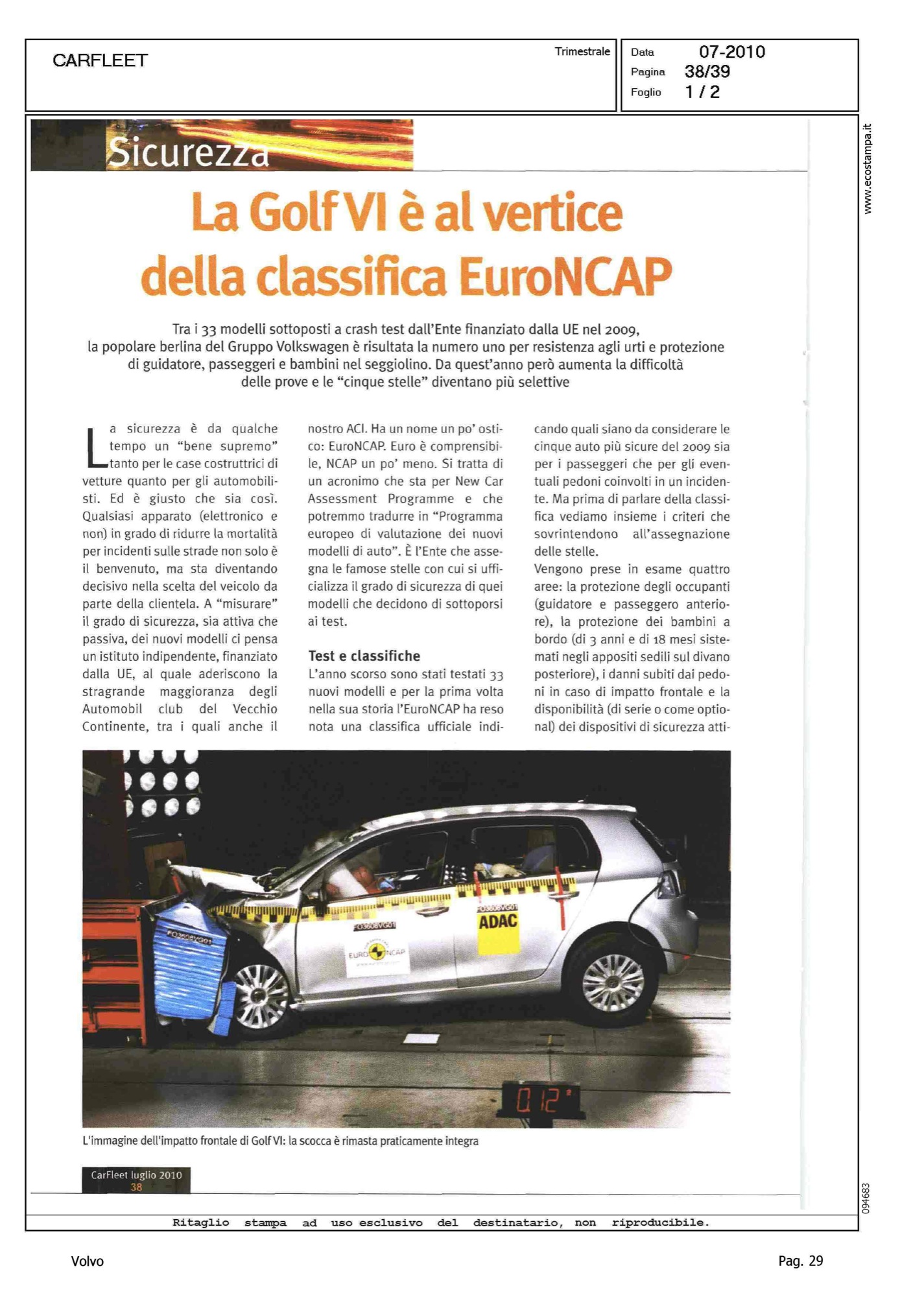 Author: MAZZANTI, ROBERTOLine: Corporate Model: Corporate Subject: - Title: SICUREZZA - LA GOLF VI E' AL VERTICE DELLA CLASSIFICA EURONCAPHighlight: CLASSIFICHE EURONCAP