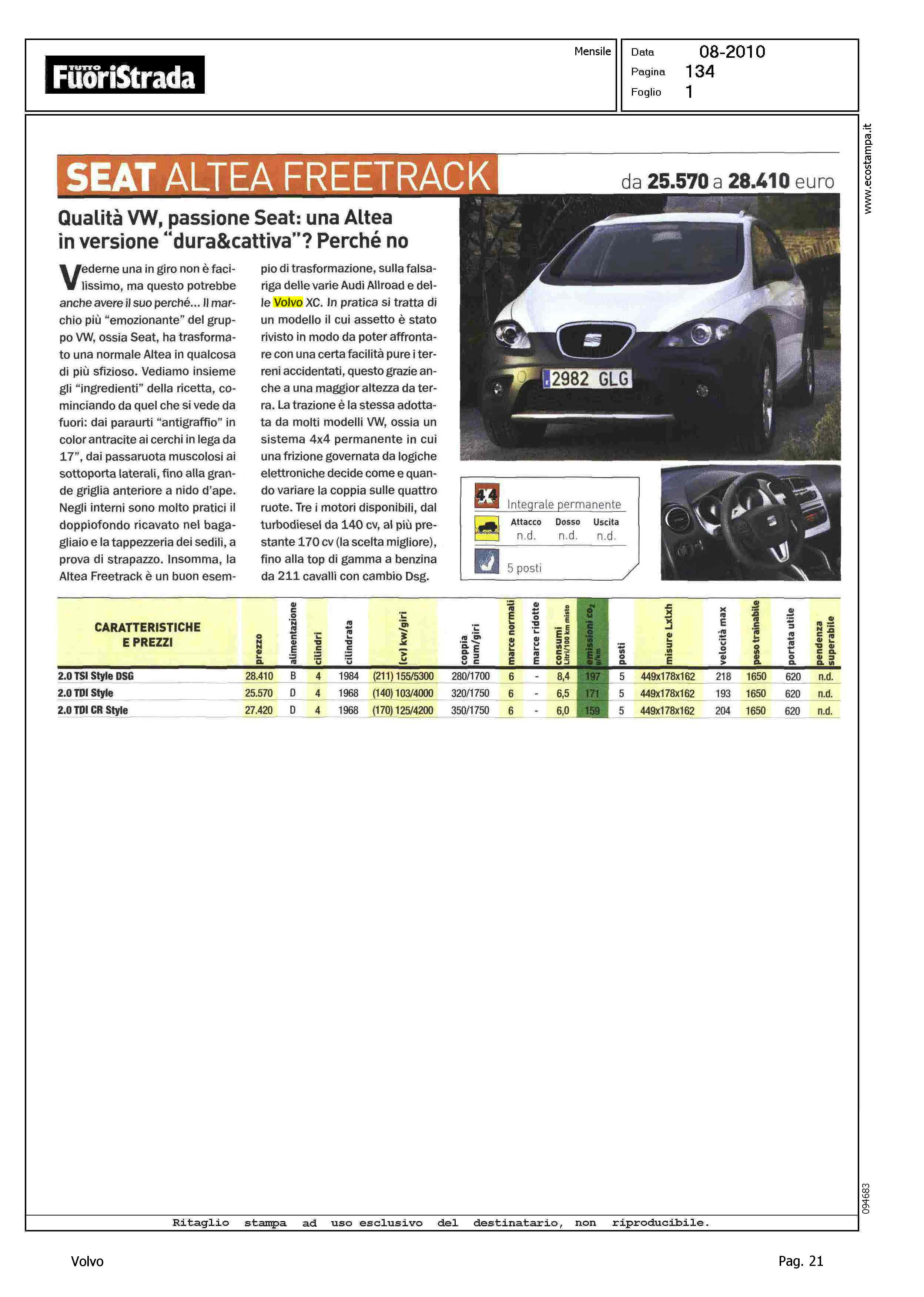 Author: Line: Corporate Model: Corporate Subject: - Title: SEAT ALTEA FREETRACKHighlight: CITAZIONE, VOLVO GAMMA XC