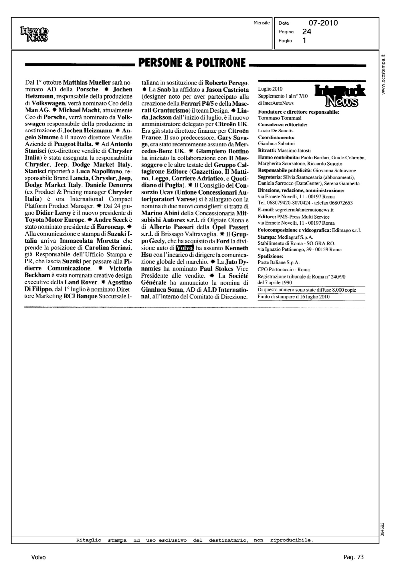 Author: Line: Corporate Model: Corporate Subject: - Title: PERSONE & POLTRONEHighlight: INTERTRUCK NEWS - KENNETH HSU NUOVO DIRETTORE COMUNICAZIONE GLOBALE VOLVO