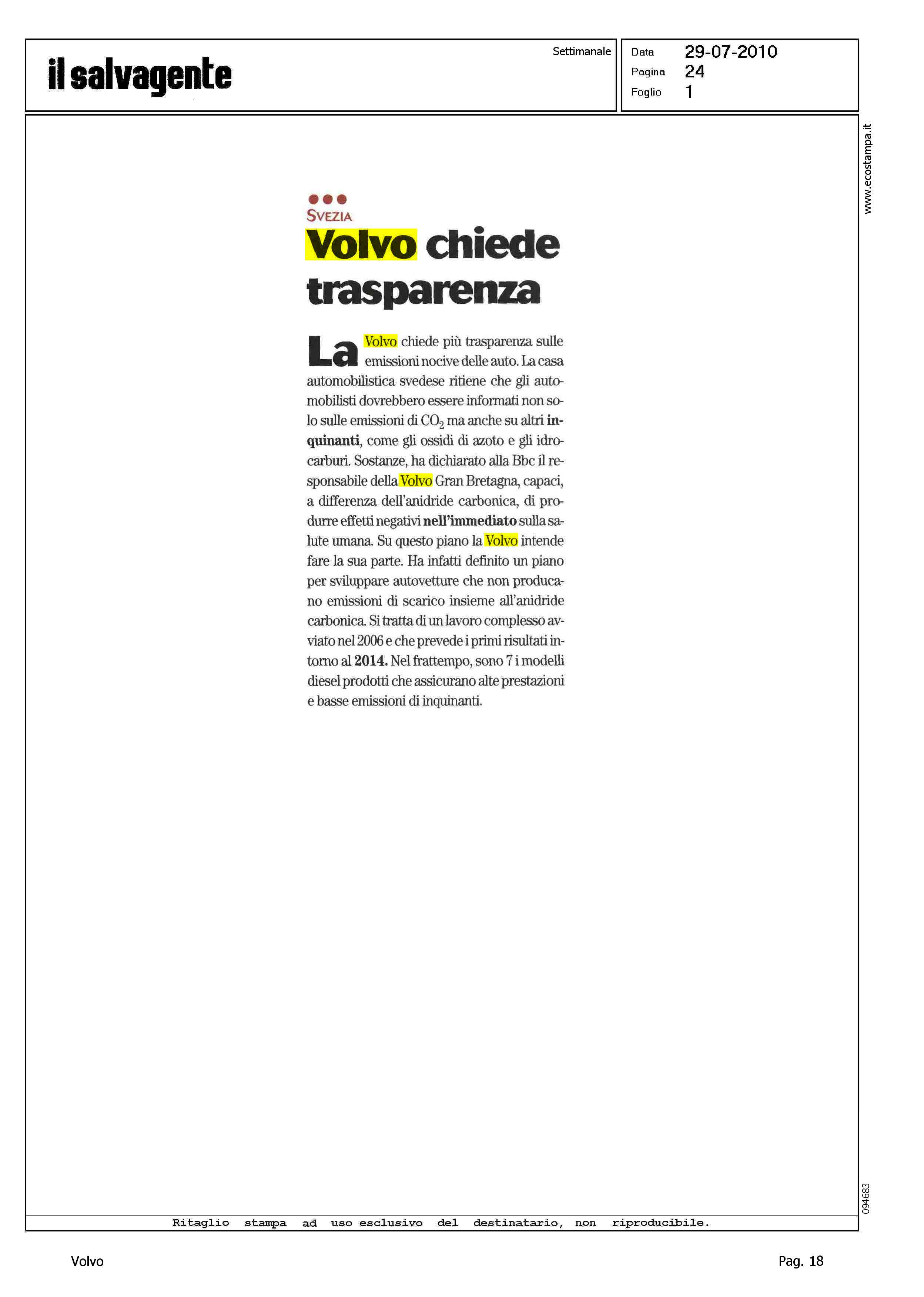 Author: Line: Corporate Model: Corporate Subject: - Title: SVEZIA - VOLVO CHIEDE TRASPARENZAHighlight: EMISSIONI DI CO2 - OSSIDI DI AZOTO - IDROCARBURI