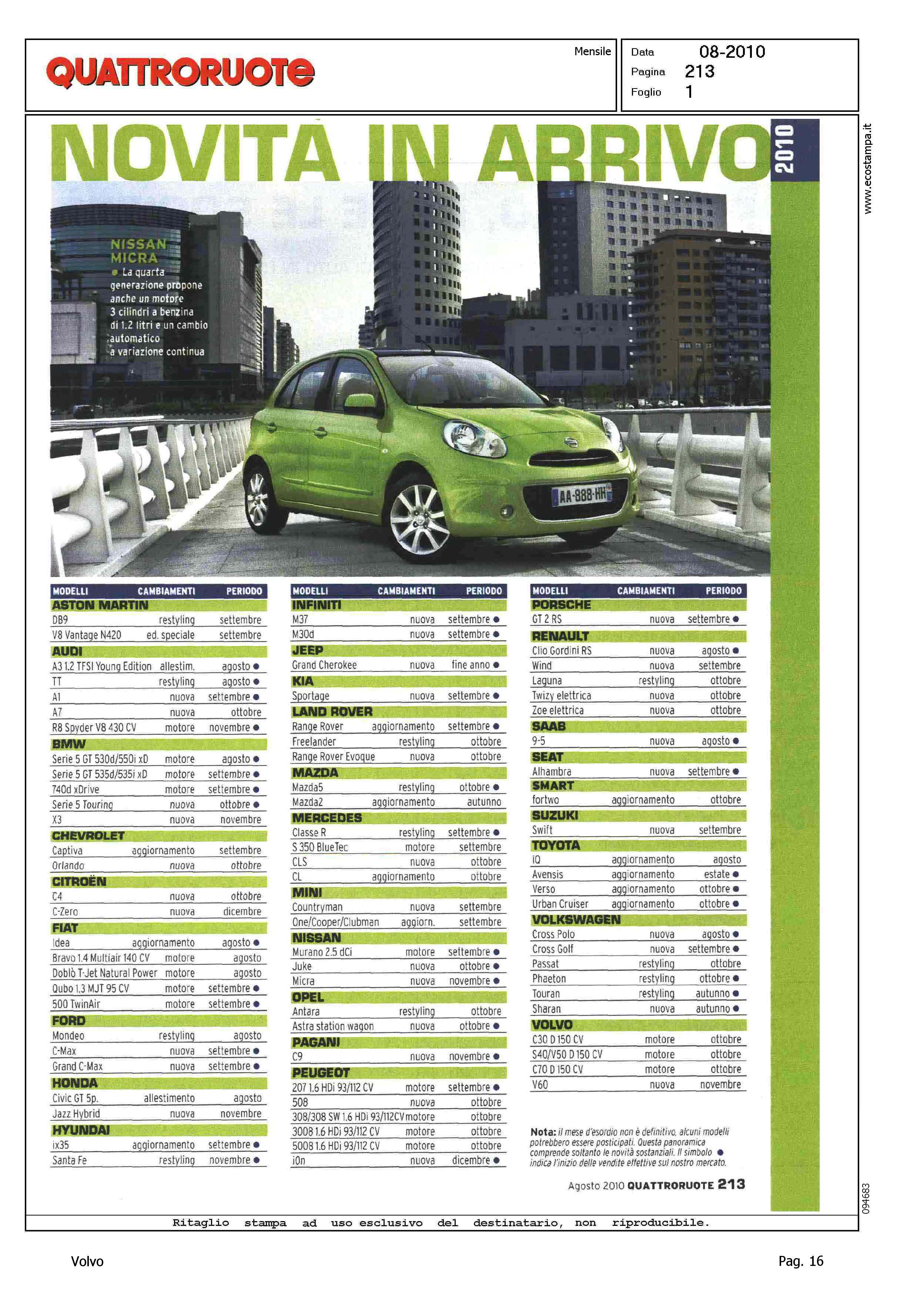 Author: Line: Corporate Model: Corporate Subject: - Title: NOVITA' IN ARRIVOHighlight: TABELLE NOVITA' MERCATO ITALIA