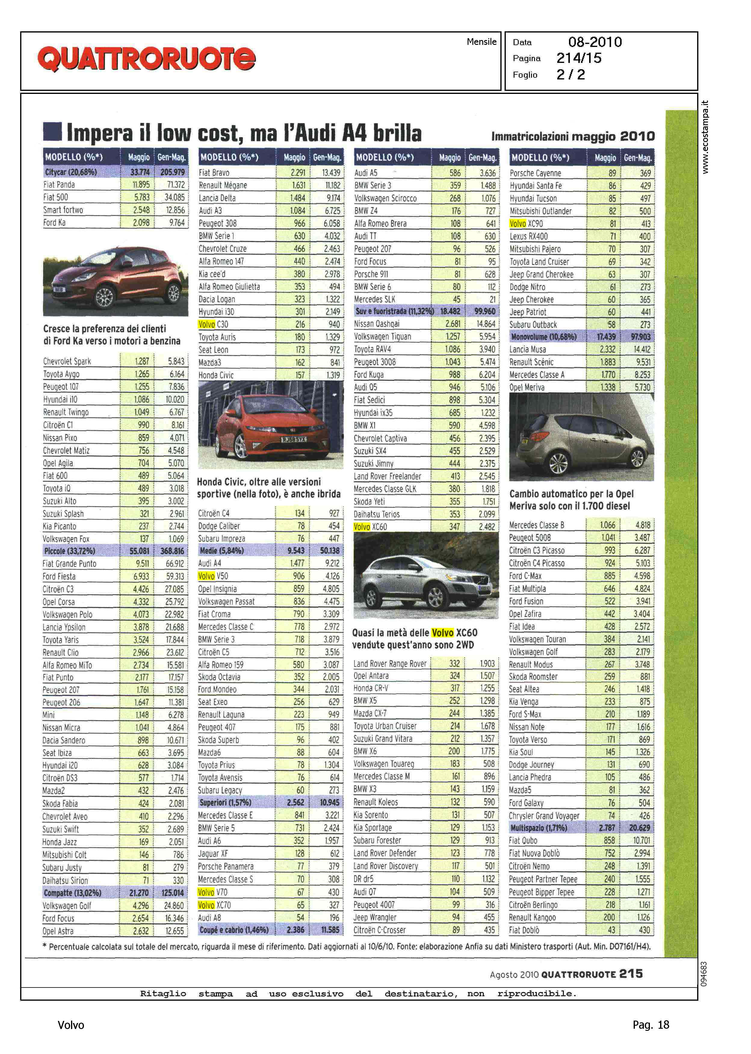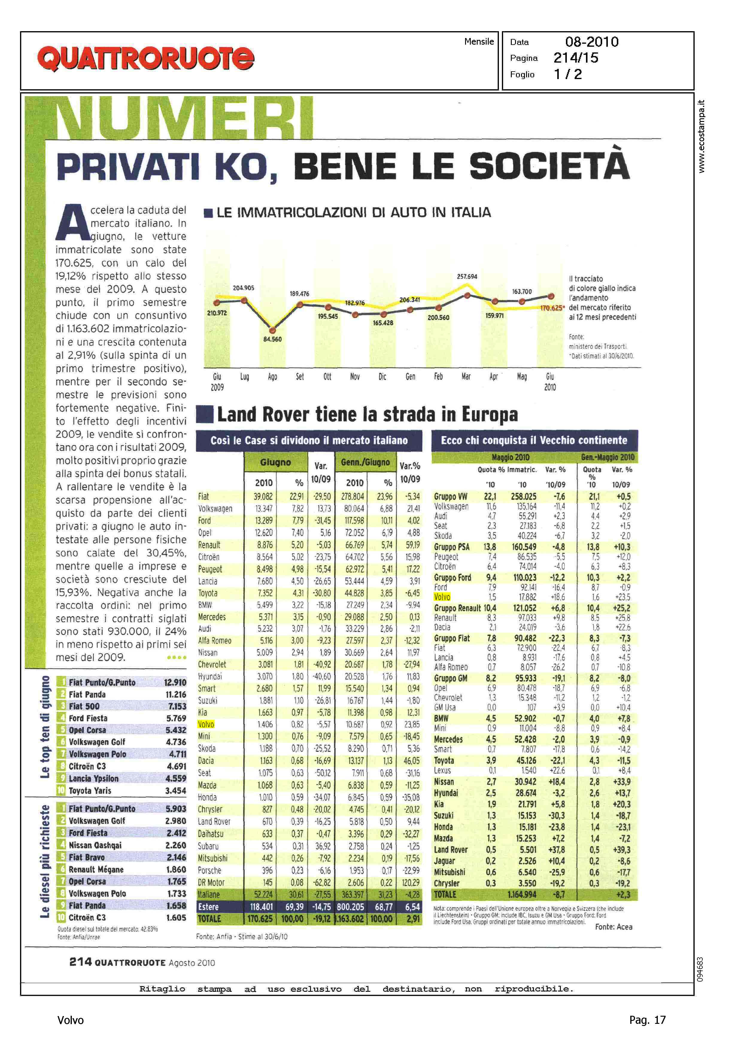 Author: Line: Corporate Model: Corporate Subject: - Title: NUMERI - PRIVATI KO, BENE LE SOCIETA'Highlight: TABELLE IMMATRICOLAZIONI AUTO MERCATO ITALIA