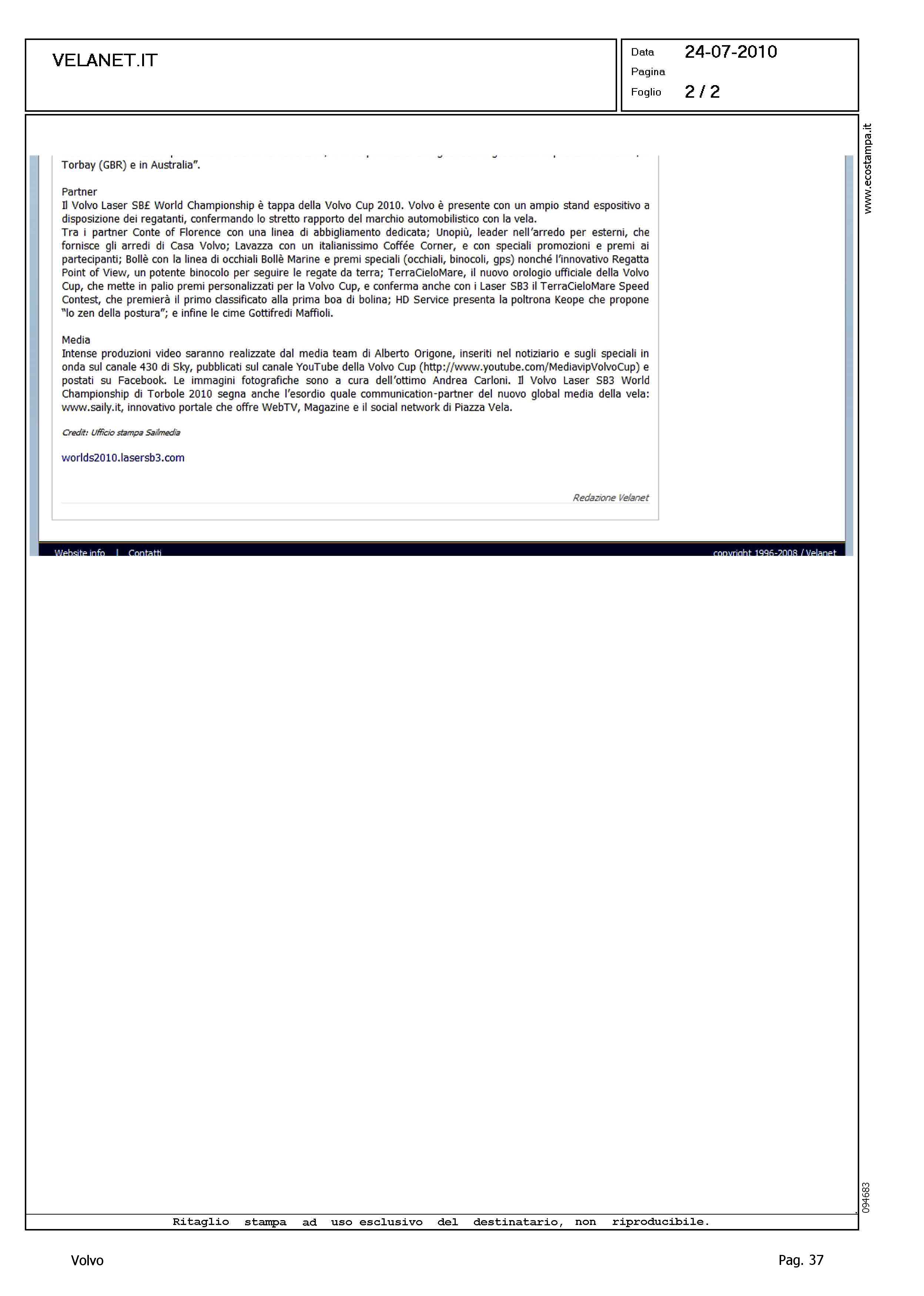 Author: Line: Corporate Model: Corporate Subject: Volvo Cup Title: CONCLUSO IL MONDIALE VOLVO LASER SB3Highlight: REGATA MONDIALE TORBOLE