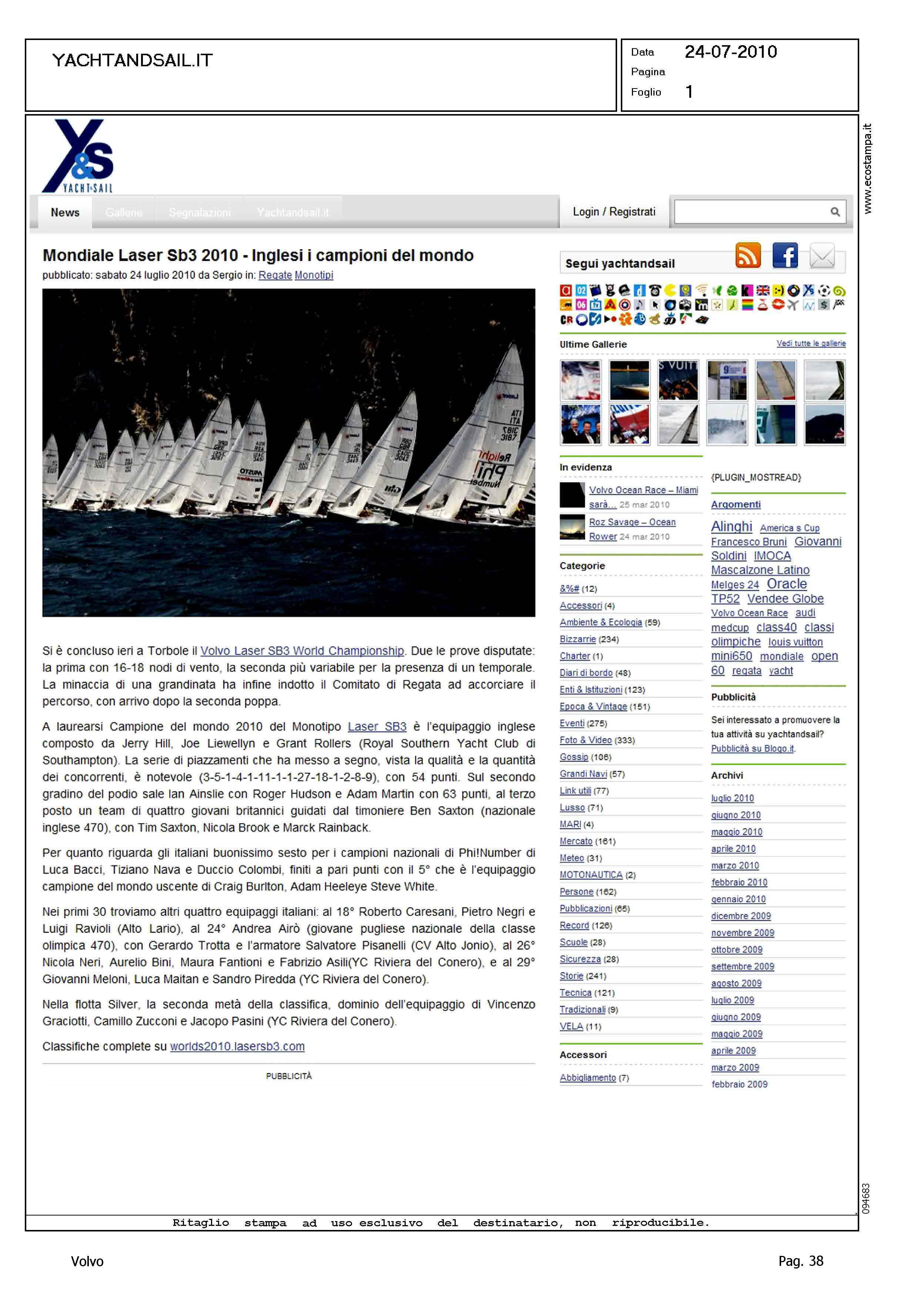Author: Line: Corporate Model: Corporate Subject: Volvo Cup Title: MONDIALE LASER SB3 2010 - INGLESI I CAMPIONI DEL MONDOHighlight: REGATA MONDIALE TORBOLE