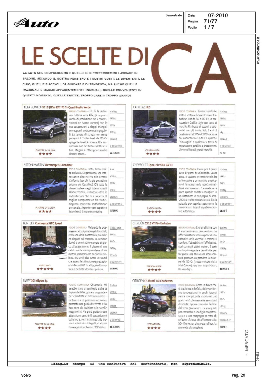 Author: Line: Corporate Model: Volvo C70 Convertible Subject: - Title: LE SCELTE DI CAHighlight: SCHEDA PRESENTAZIONE PRODOTTO - DESIGN - MOTORE - CAMBIO - ALLESTIMENTI - PRESTAZIONI - PREZZO - 4/5 STELLE, PIACERE DI GUIDA
