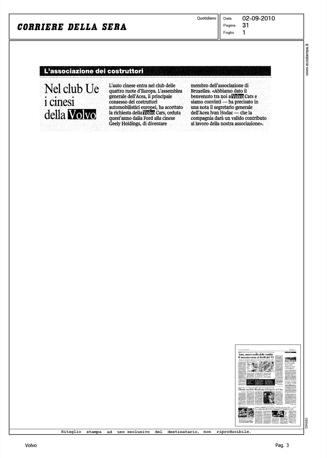 Author: Line: Corporate Model: Corporate Subject: - Title: NEL CLUB UE I CINESI DELLA VOLVOHighlight: ACEA - GEELY