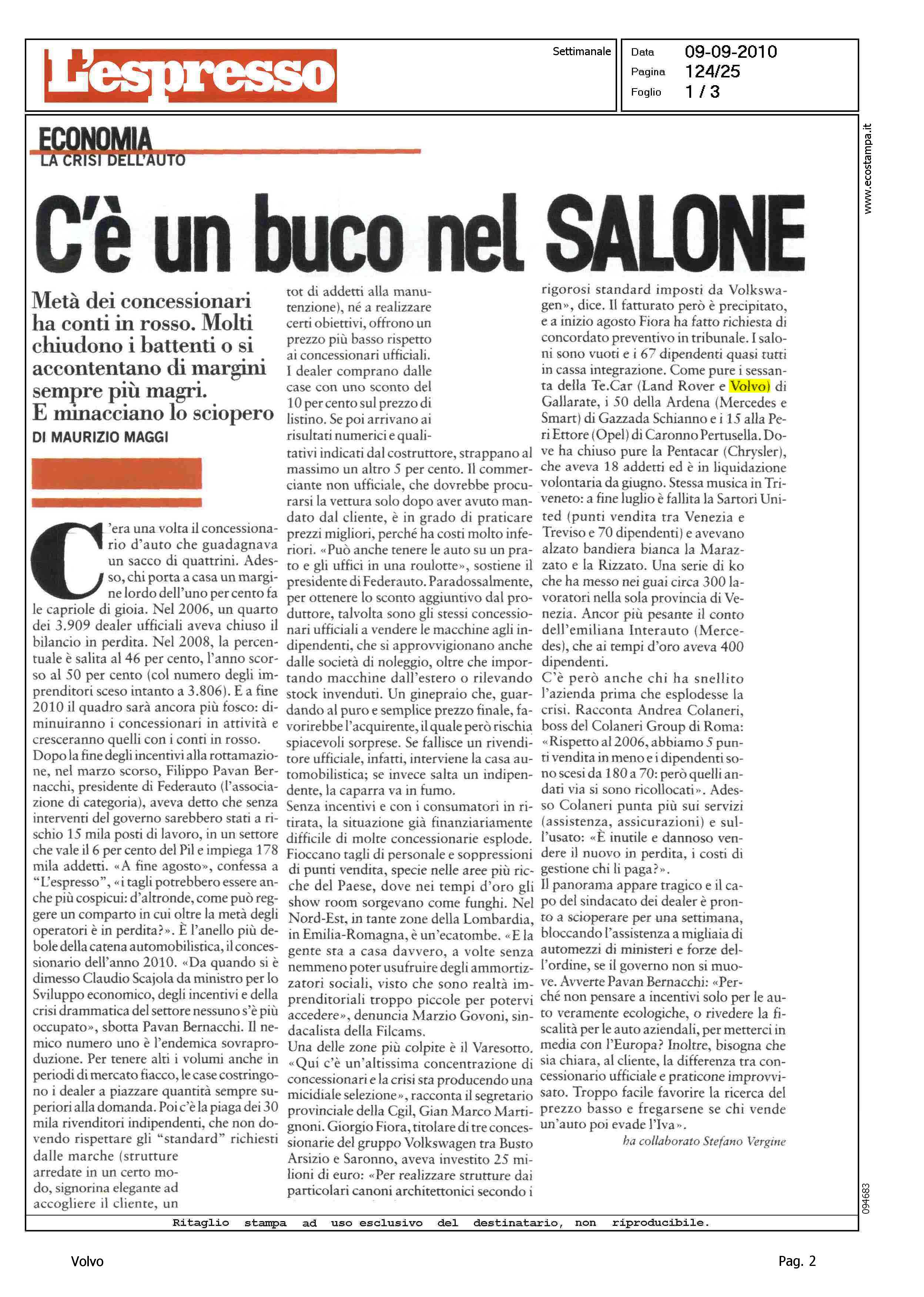 Author: MAGGI, MAURIZIOLine: Corporate Model: Corporate Subject: - Title: C'E' UN BUCO NEL SALONEHighlight: ANALISI MERCATO ITALIA - PAVAN BERNACCHI SU CONCESSIONARI IN ITALIA
