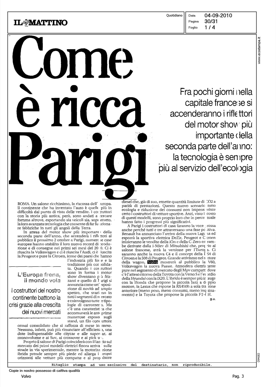 Author: URSICINO, GIORGIOLine: Corporate Model: Subject: - Title: COME E' RICCA PARIGIHighlight: PARIGI - NOVITA' - V60 UNVEILING