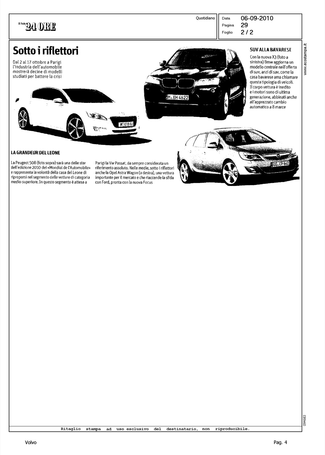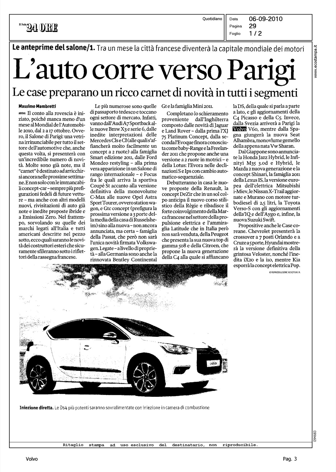 Author: MAMBRETTI, MASSIMOLine: Corporate Model: Corporate Subject: - Title: L'AUTO CORRE VERSO PARIGIHighlight: PARIGI - V60 UNVEILING