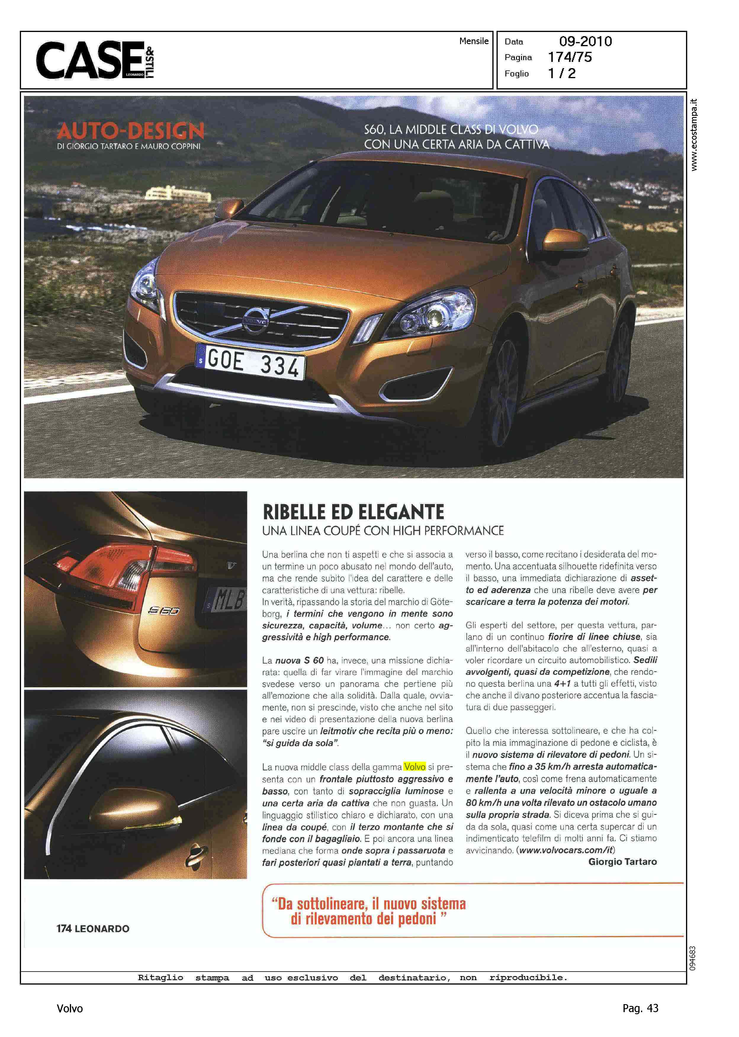 Highlight: VALORE VOLVO - PROFILO DI MISSIONE - DESIGN - FRONTALE - FIANCATA - POSTERIORE - ABITACOLO - SICUREZZA - PEDESTRIAN DETECTION