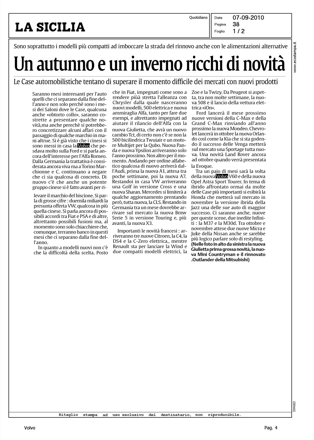 Author: Line: Corporate Model: Corporate Subject: - Title: UN AUTUNNO E UN INVERNO RICCHI DI NOVITA'Highlight: GEELY - LANCIO V60 - NOVITA' DI AUTUNNO
