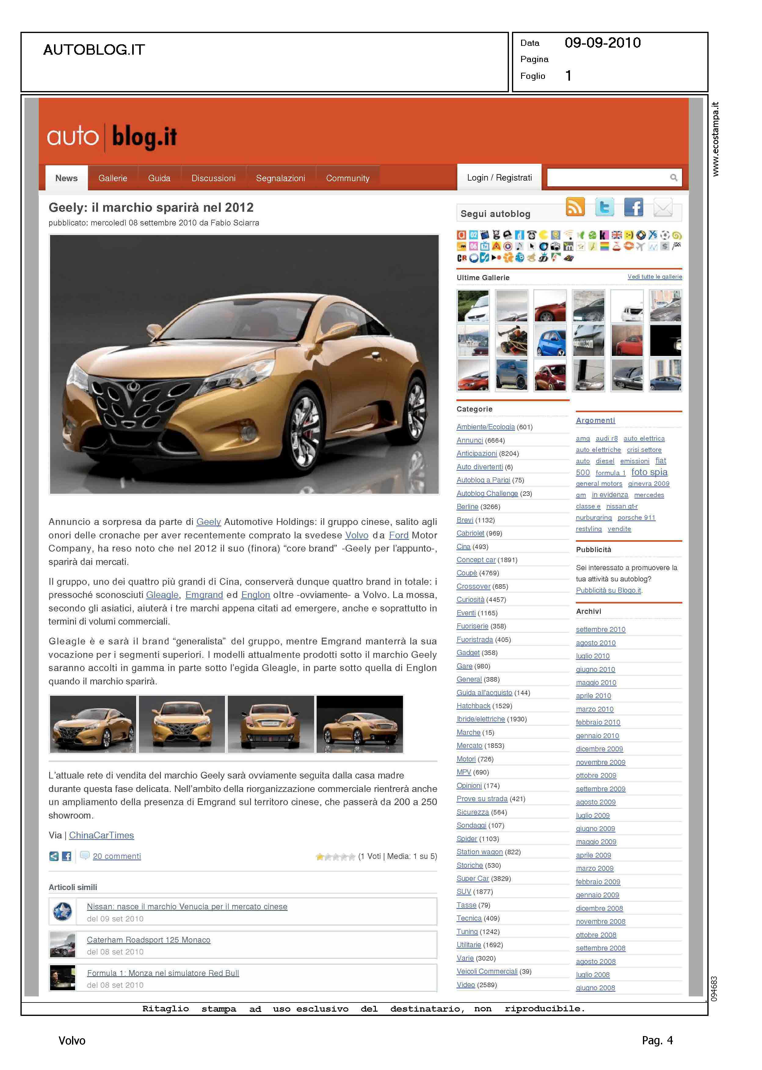 Author: Line: Corporate Model: Corporate Subject: - Title: GEELY: IL MARCHIO SPARIRA' NEL 2012Highlight: SVILUPPO POLITICA INDUSTRIALE GEELY MERCATI AUTO