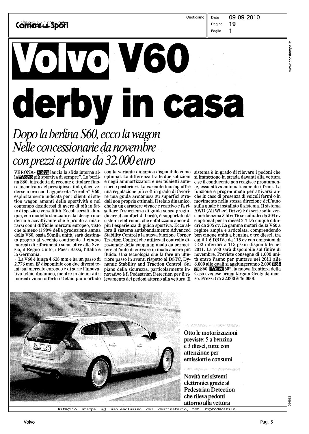 Title: VOLVO V60 DERBY IN CASA