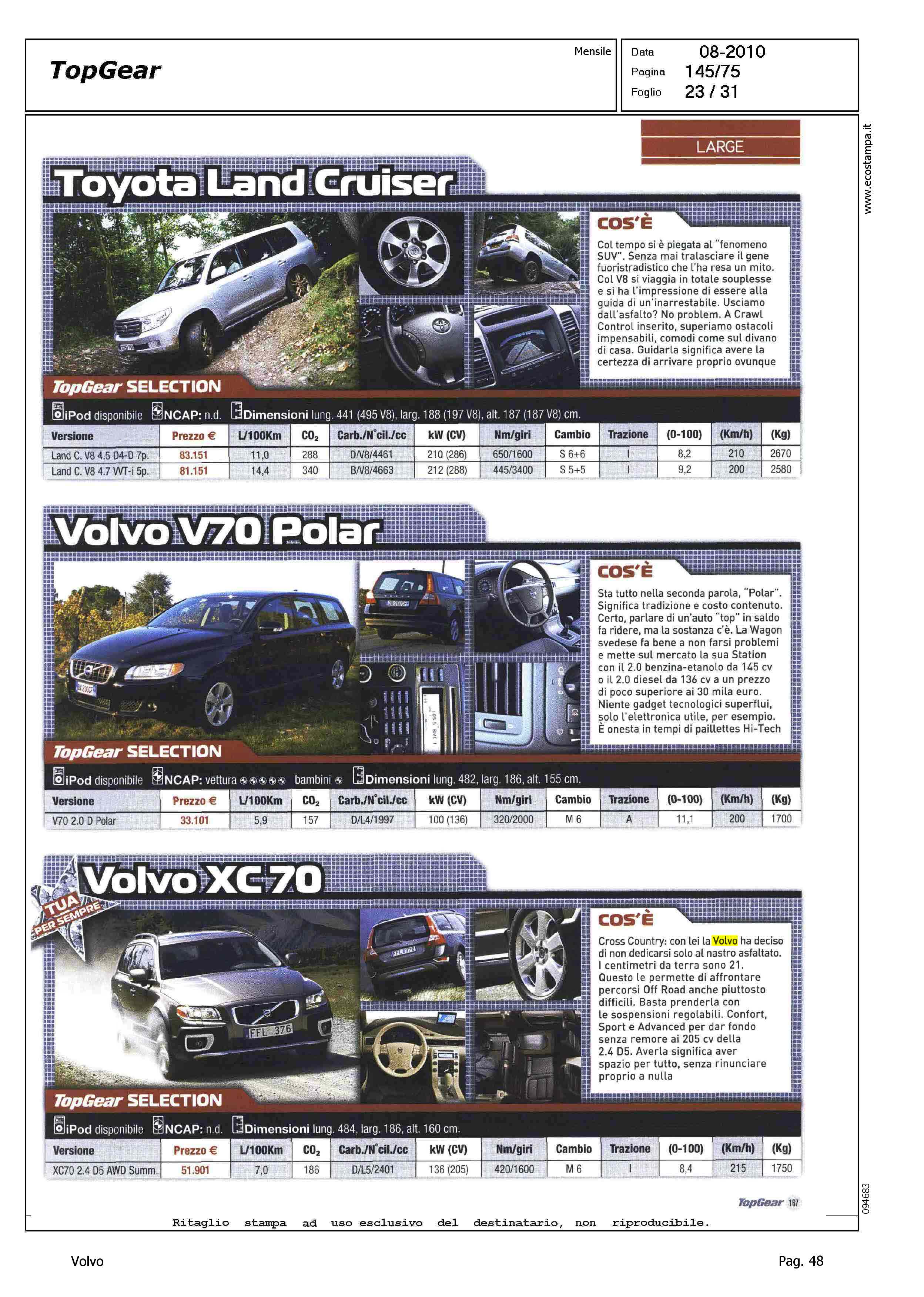 Author: Line: Corporate Model: Corporate Subject: - Title: CAR SHOP - VOLVO XC60, VOLVO XC70, VOLVO V70 POLARHighlight: SCHEDE PRODOTTO - GUIDA ALL'ACQUISTO