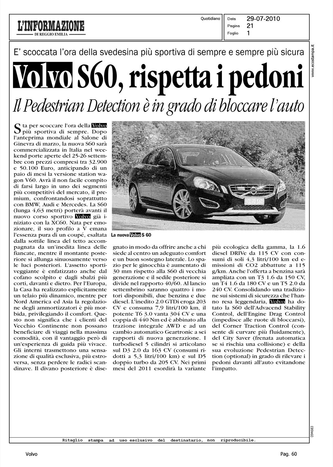 Title: VOLVO S60, RISPETTA I PEDONI