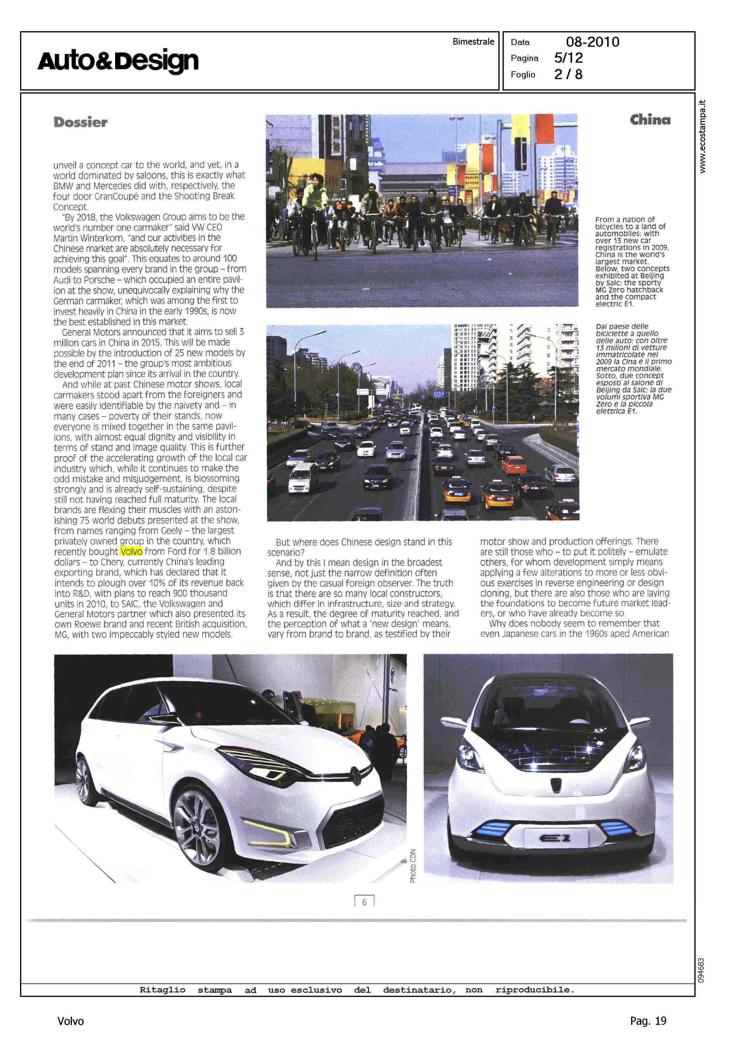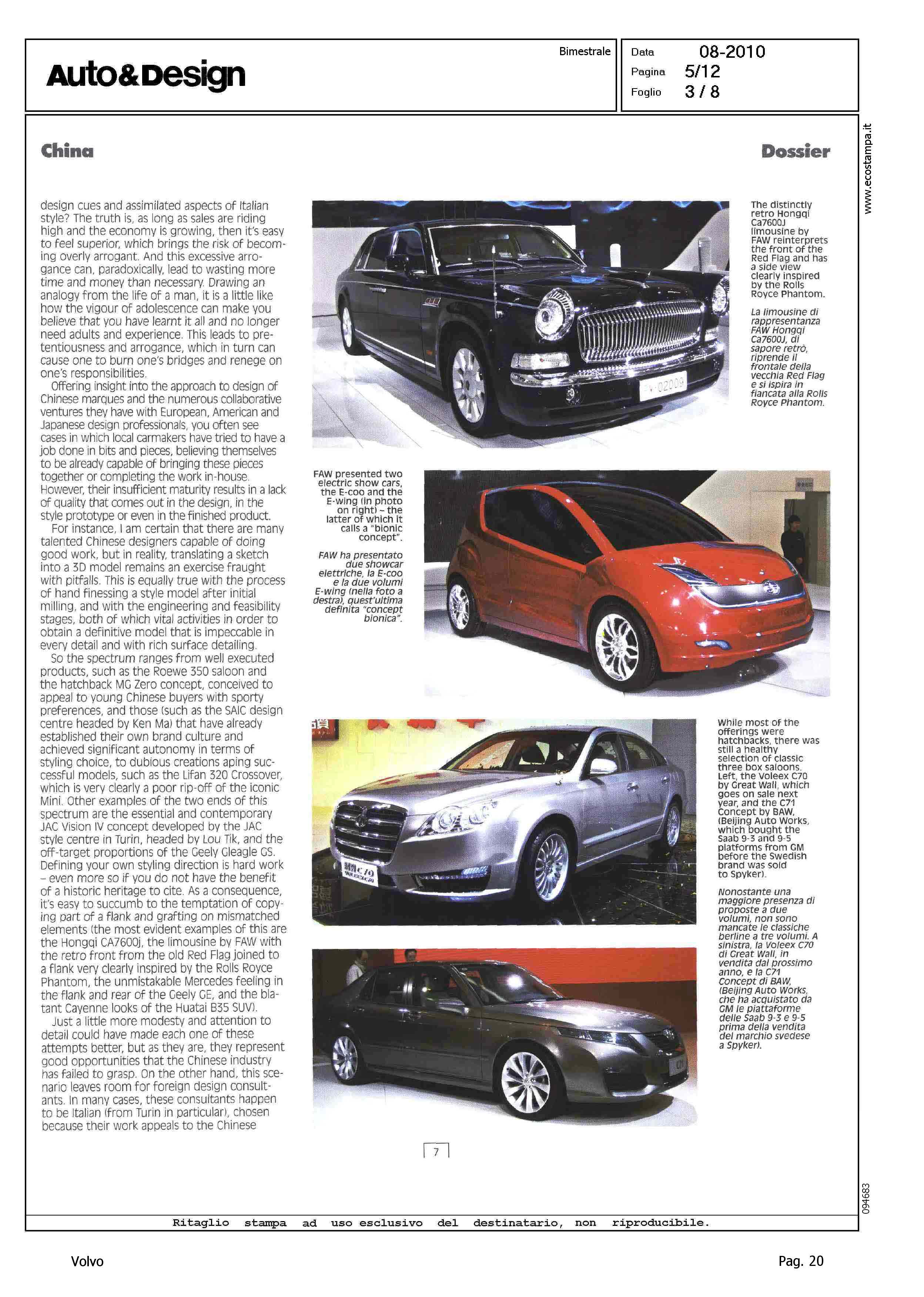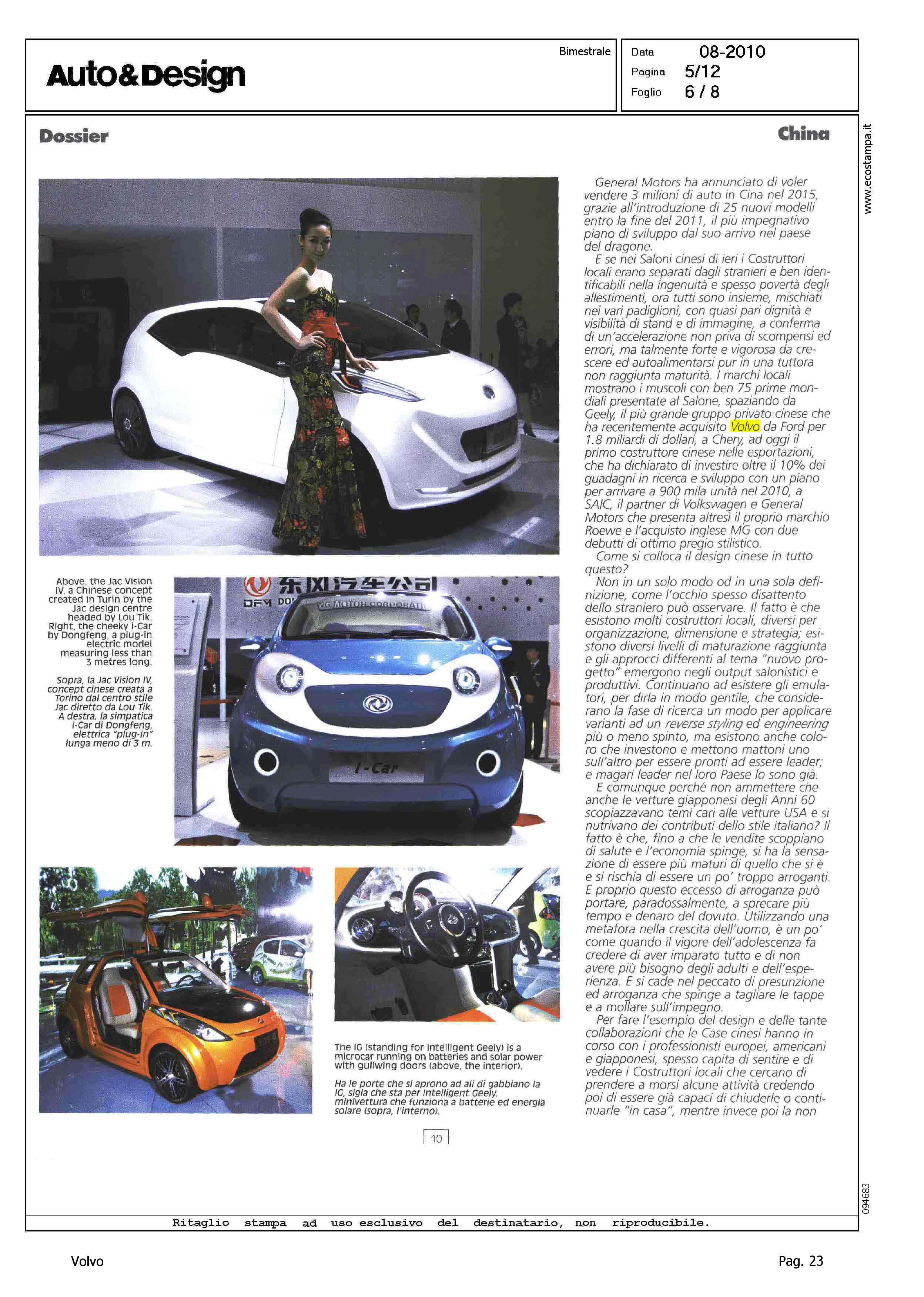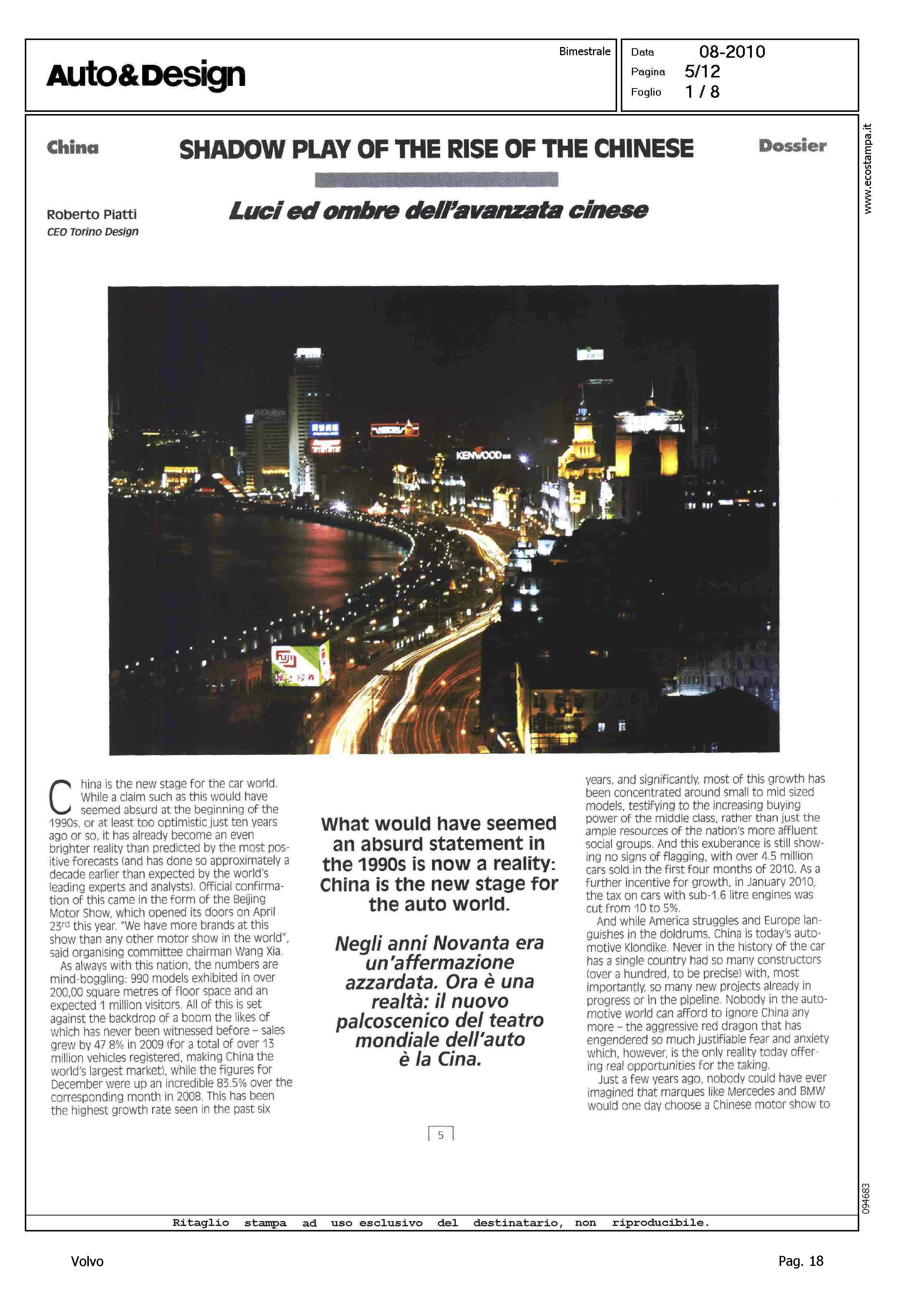 Author: PIATTI, ROBERTOLine: Corporate Model: Corporate Subject: - Title: LUCI E OMBRE DELL'AVANZATA CINESEHighlight: IL MERCATO DELL'AUTO IN CINA