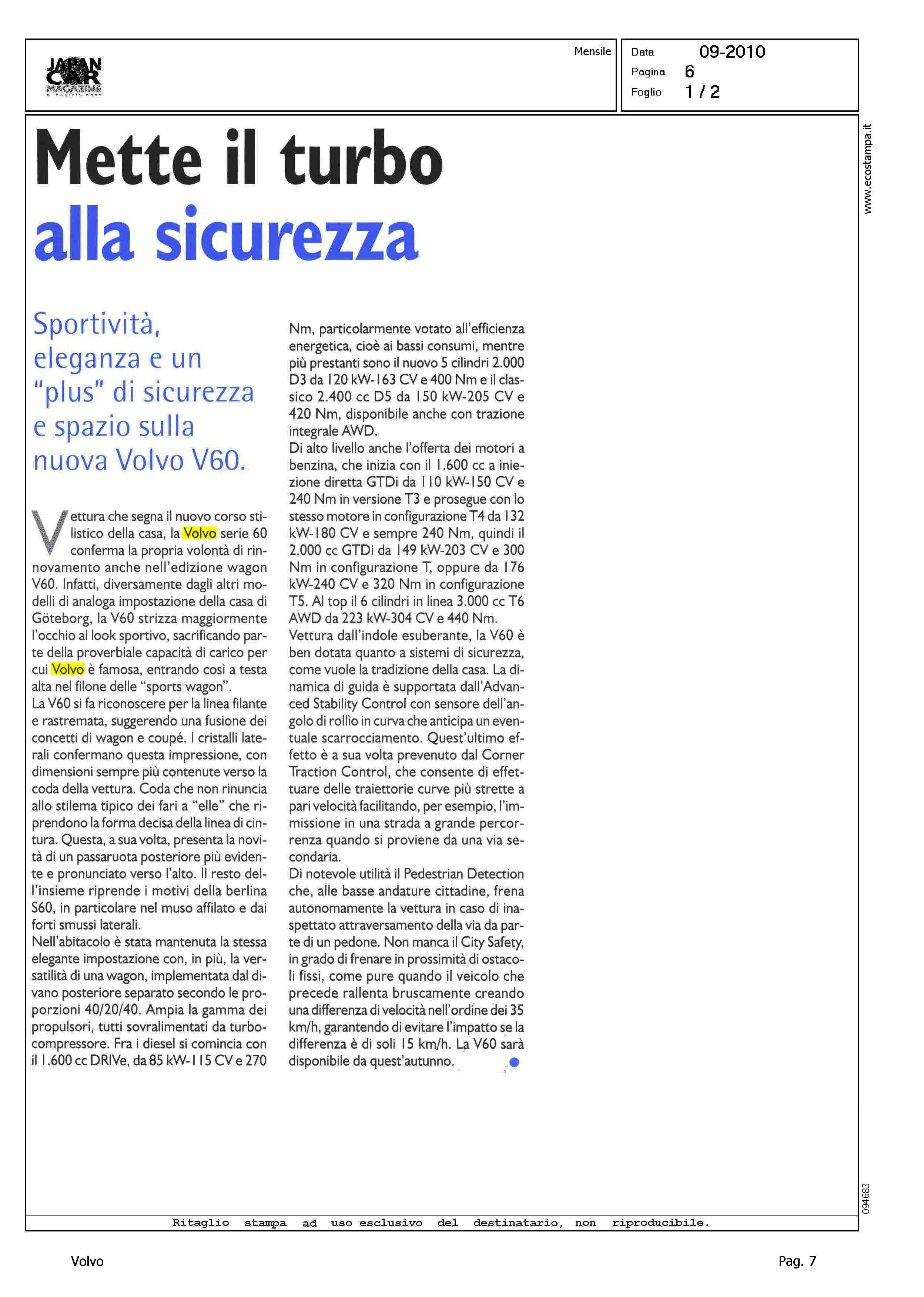Author: Line: Corporate Model: Subject: - Title: METTE IL TURBO ALLA SICUREZZAHighlight: SICUREZZA - DESIGN - ABITACOLO - MOTORI - ACCESSORI SICUREZZA ATTIVA - PEDESTRIAN DETECTION - CITY SAFETY