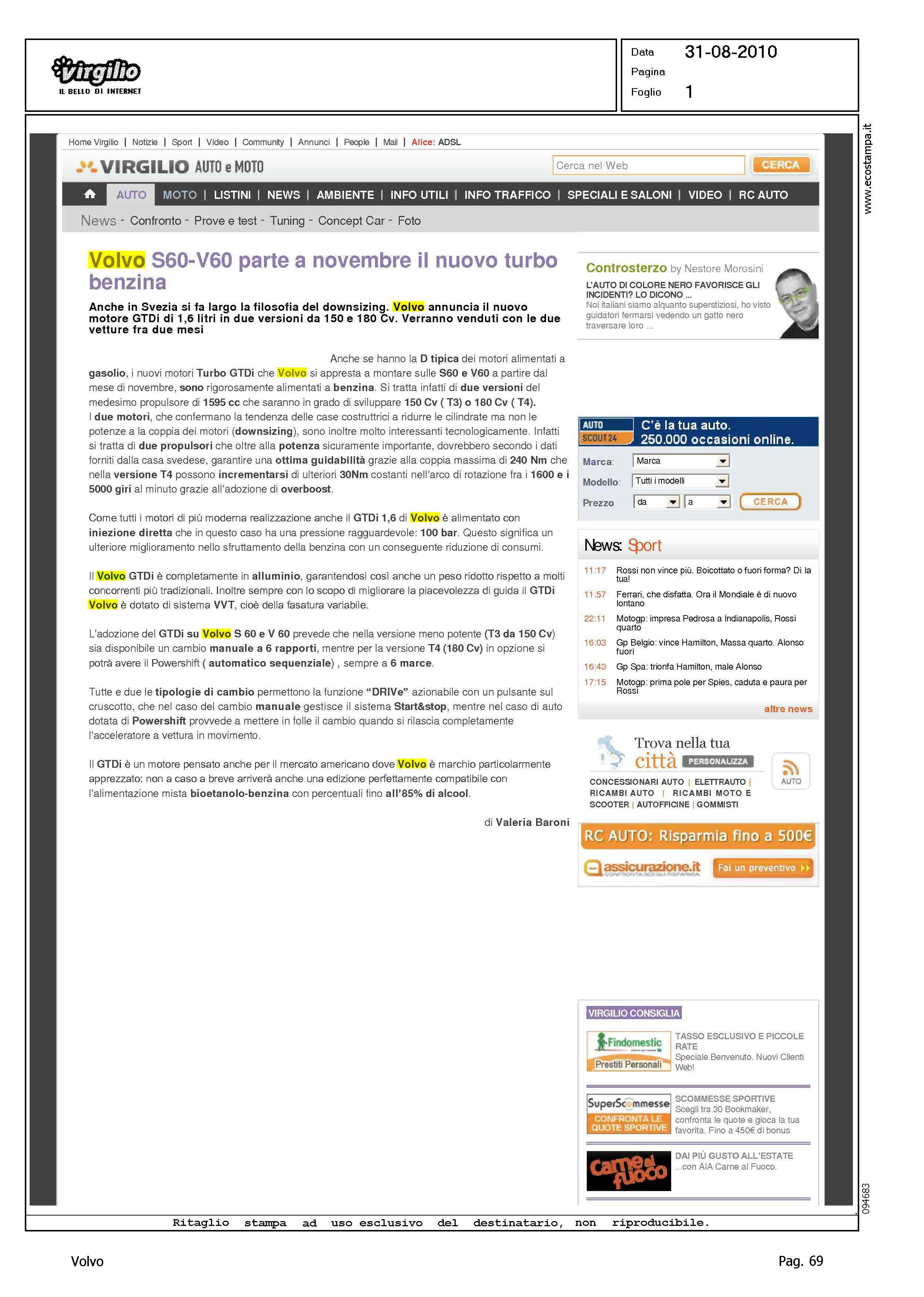 Author: Line: Corporate Model: Corporate Subject: - Title: VOLVO S60-V60 PARTE A NOVEMBRE IL NUOVO MOTORE TURBO-BENZINAHighlight: LANCIO COMMERCIALE MODELLI MOTORE GTDI - CARATTERISTICHE TECNICHE - MODELLI INTERESSATI