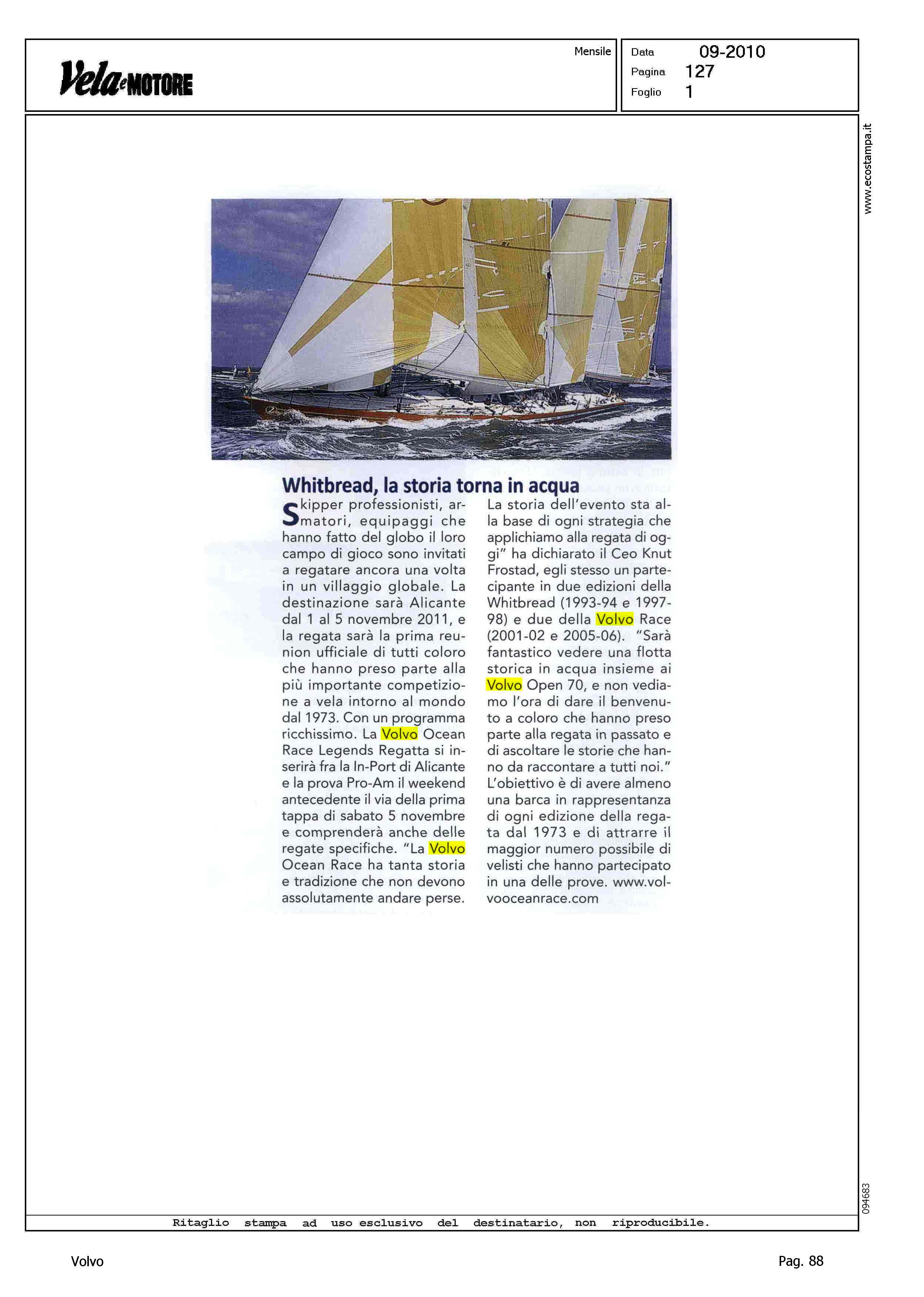 Author: Line: Corporate Model: Corporate Subject: Volvo Ocean Race Title: WHITBREAD, LA STORIA TORNA IN ACQUAHighlight: ALICANTE - LEGEND REGATTA - OPEN 70