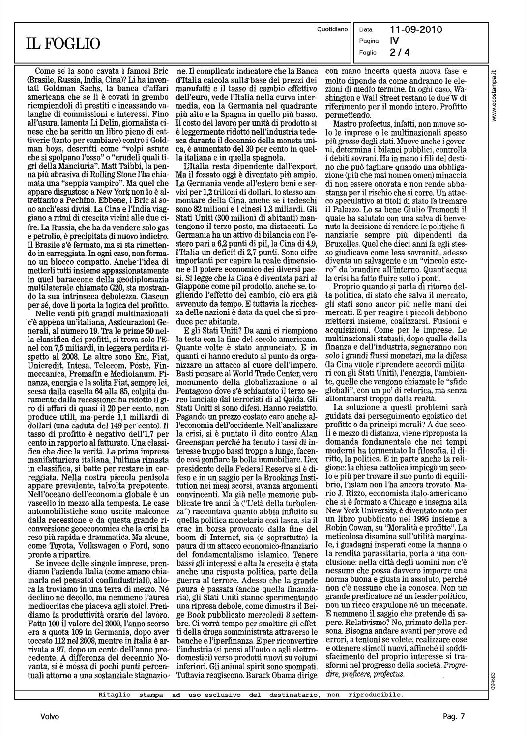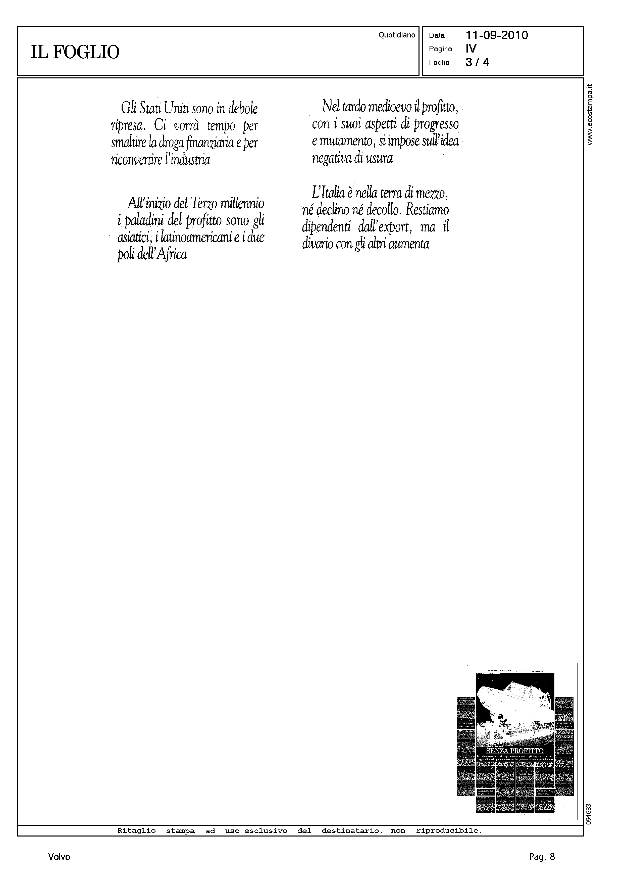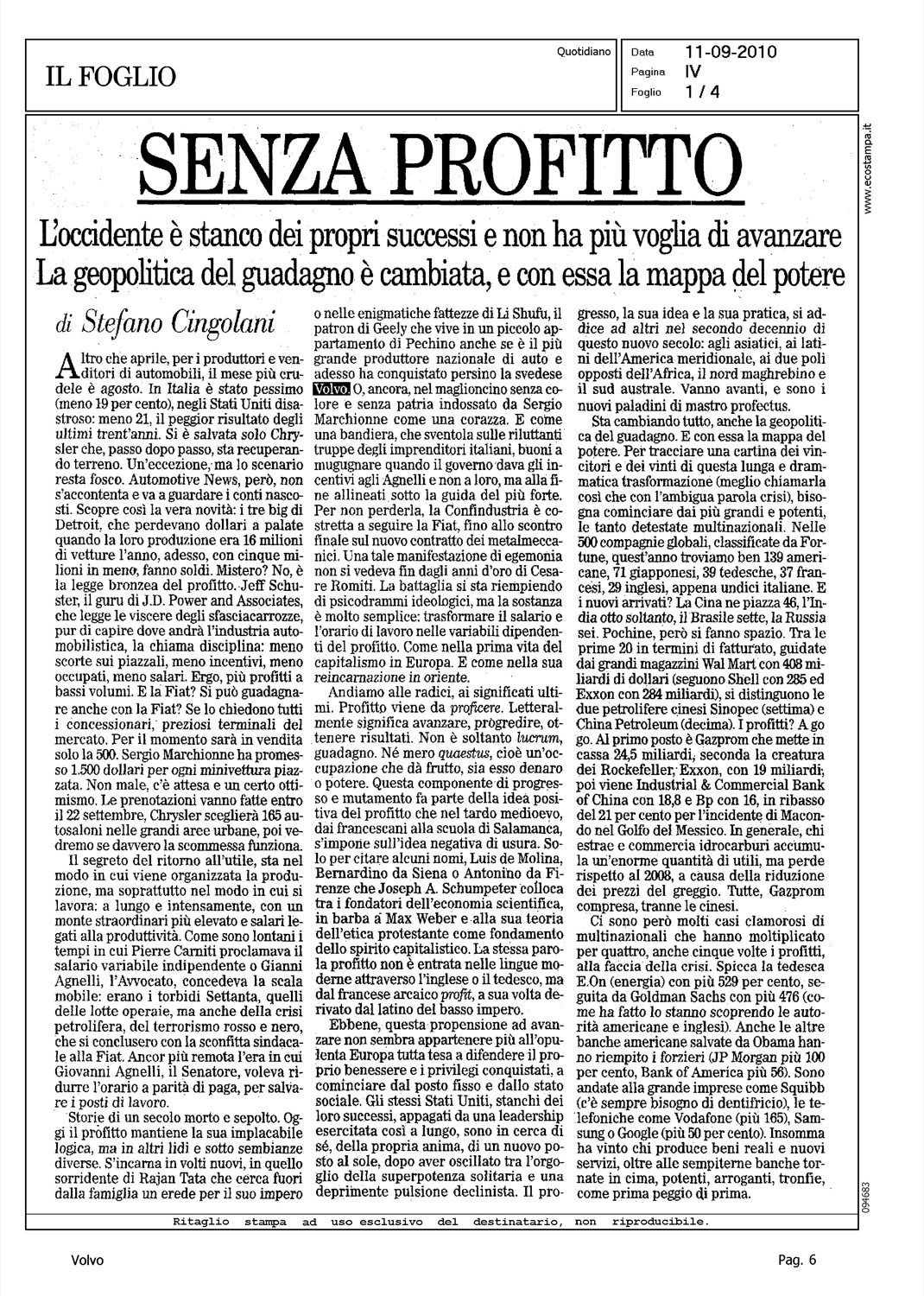 Author: CINGOLANI, STEFANOLine: Corporate Model: Corporate Subject: - Title: SENZA PROFITTOHighlight: GEELY - CITAZIONE - ACQUISIZIONE VOLVO