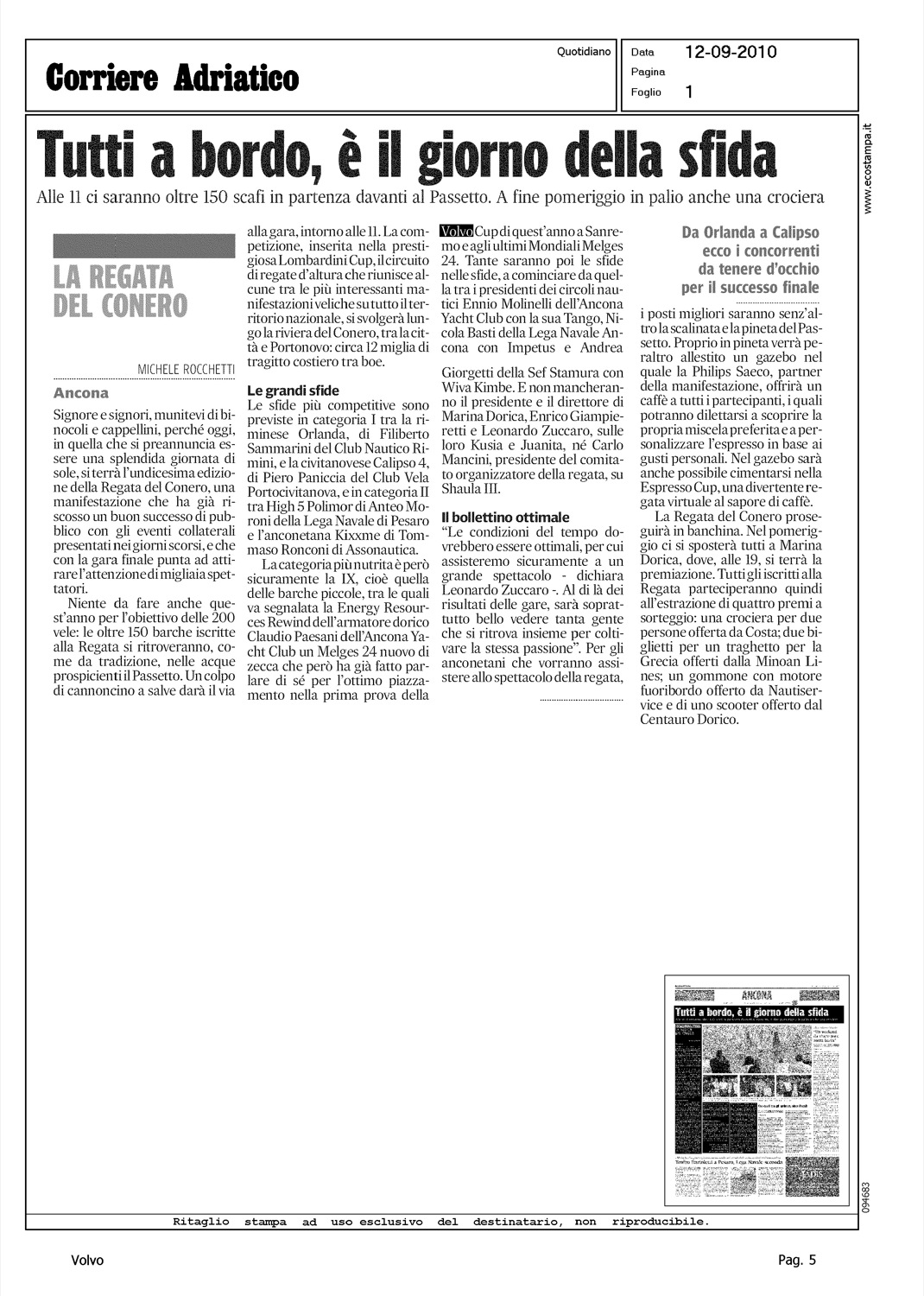 Author: ROCCHETTI, MICHELELine: Corporate Model: Corporate Subject: Volvo Cup Title: TUTTI A BORDO, E' IL GIORNO DELLA SFIDAHighlight: REGATA DEL CONERO - CITAZIONE MONDIALI MELGES 24 VOLVO CUP