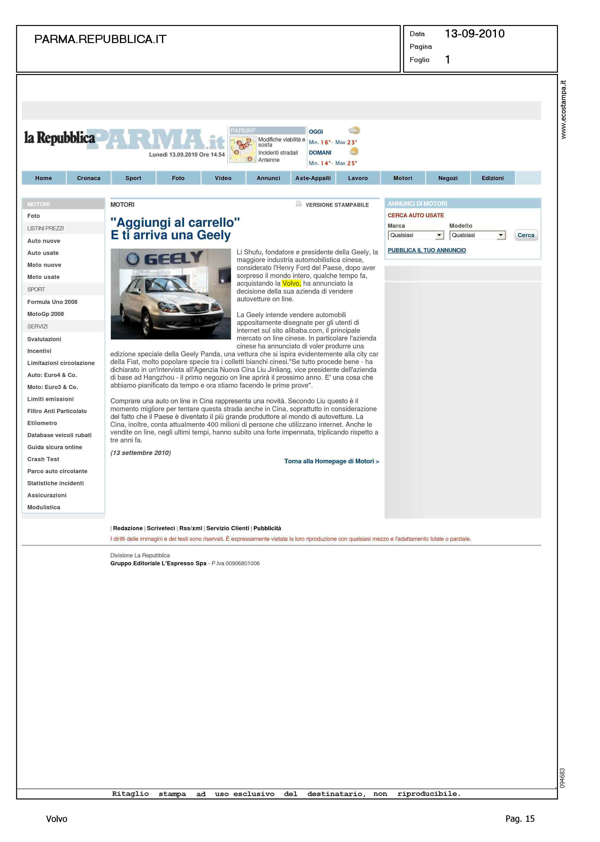 Author: Line: Corporate Model: Corporate Subject: - Title: "AGGIUNGI AL CARRELLO" E TI ARRIVA UNA GEELYHighlight: (EDIZIONE PARMA) - GEELY, TECNICA VENDITA INTERNET - VOLVO